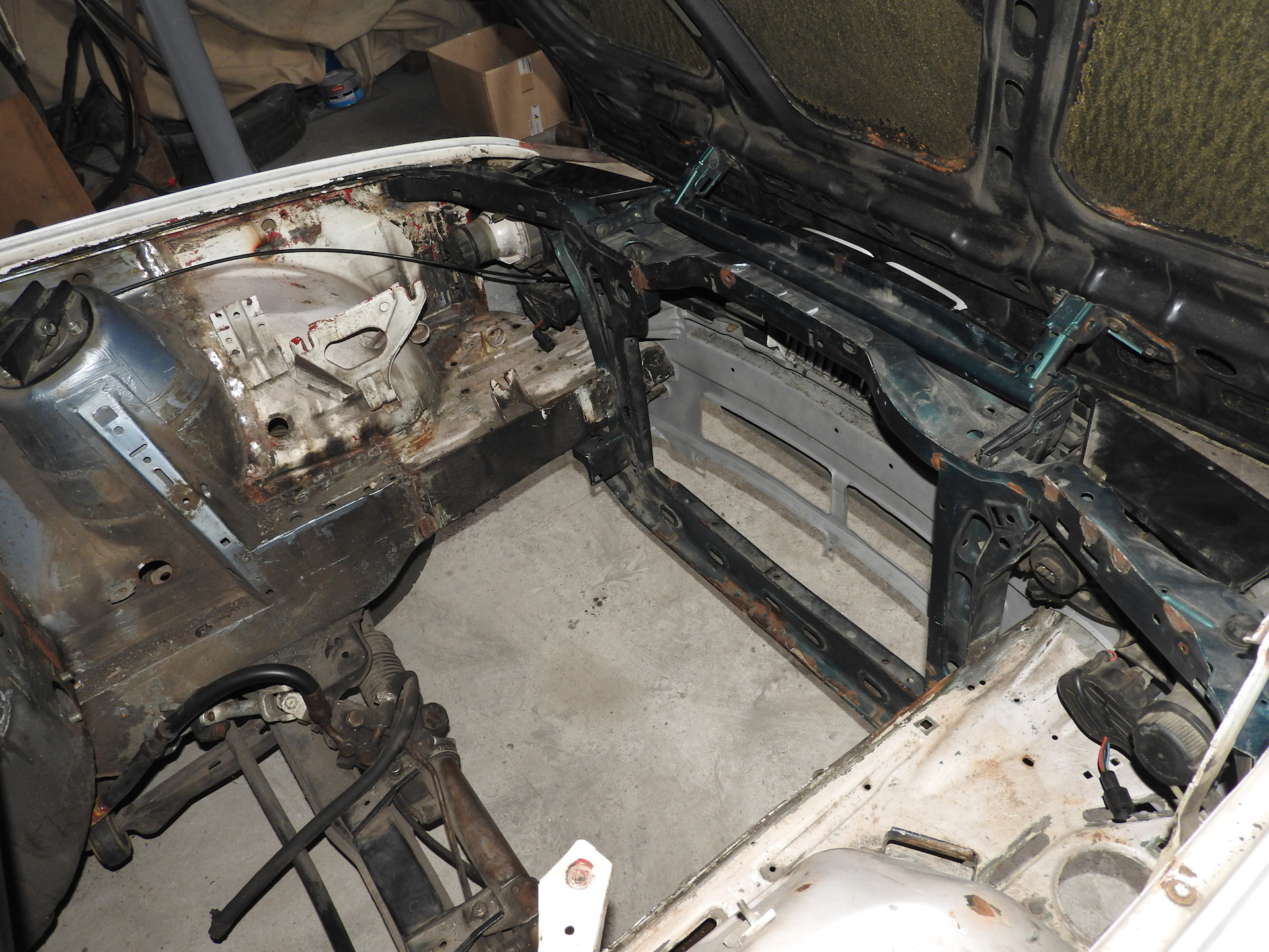 В-общем процесс идет, первые результаты уже есть, это радует ). Осталась жопа )) — задние внешние арки, ниша запаски, низ фартука и мелочи по дверям — петли я так и не нашел…