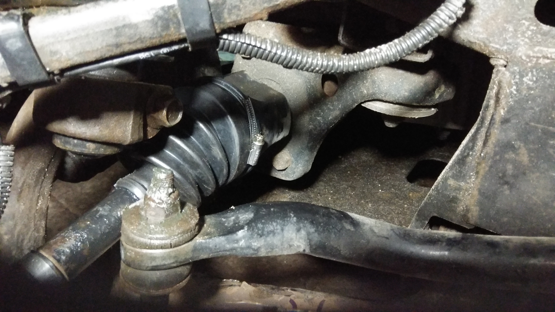 Меняя наконечник решил посмотреть и состояние шрусов. Как и у всех лифтованых внутренний пыльник "готов на покой". Заменил простым способом, от шнивы. Хотел прозрачный, но у нас были только красные. Они мне показались тверже против резиновых и я решился на дешмаш.