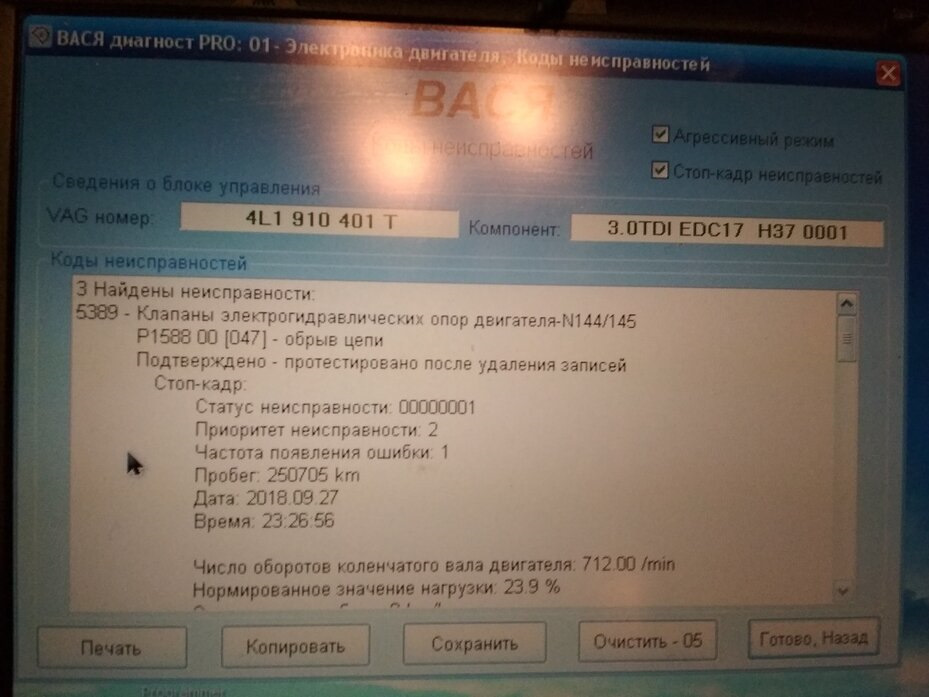 Ошибка 5389 по клапану электрогидравлических опор двигателя N144/145 P1588 00 [047] висела давно.