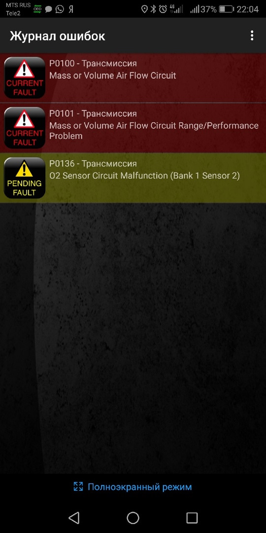 и вот собственно то потухнет то загорится… Вчера нашел свою ELMку 327 из поднебесной и дай думаю попробую чего скажет… результат диагностики такой:ошибки Р0100 Трансмиссия; Р0101 Трансмиссия; Р0136 Трансмиссия, загуглил иииии 0100 и 0101 написано что ДМРВ, а вот 0136 что кат…