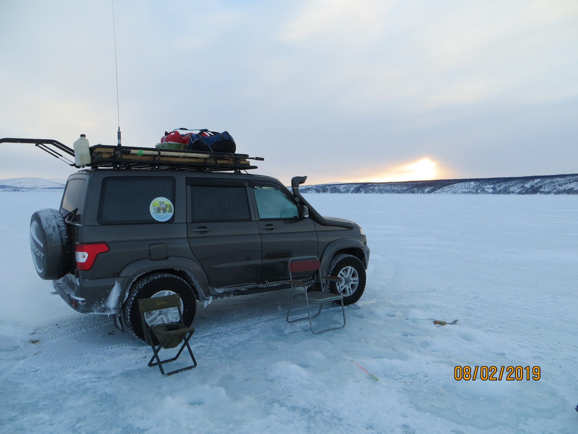 На ночь мы оккупировали место на одной из полян на берегу Нерпичьей в устье Нюрчана. Ребята поставили палатку типа Эскимо с печкой для комфортного принятия пищи и отмечания приезда на рыбалку. Привели машины в положение сна, я перегрузил на крышу часть бутора, включая запас топлива (3 двадцатки с 92 бензином и двадцатку с керосином для Планара). Перевязали поводки на удочках, на которых образовались узелки, приготовили ужин и сели за стол отмечать рыбалку.