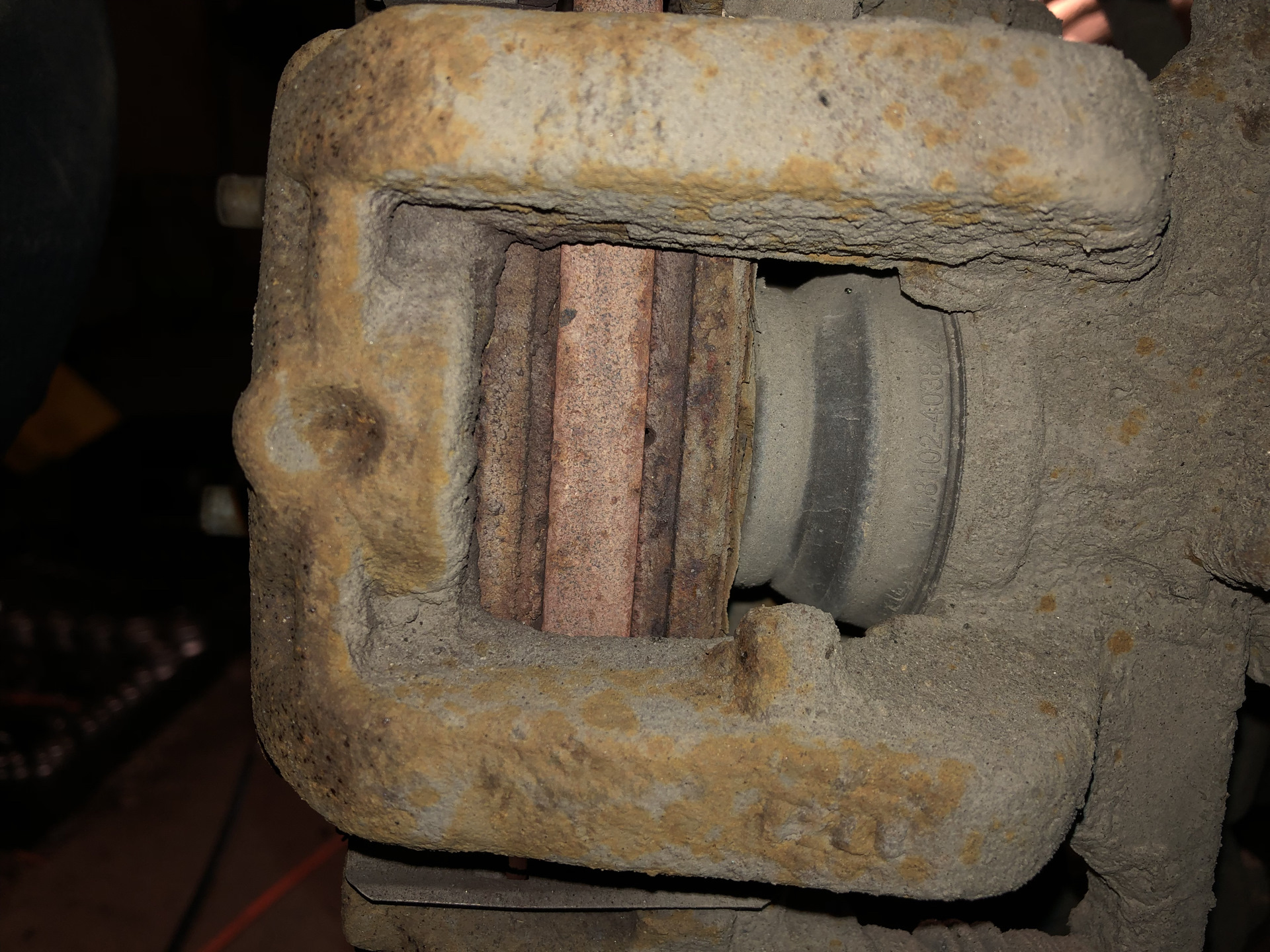 Хрен знает почему поршень суппорта не клинит, свободно ходит, может пластинки были сильно ржавые и без смазки вот и колодки подклинивали
