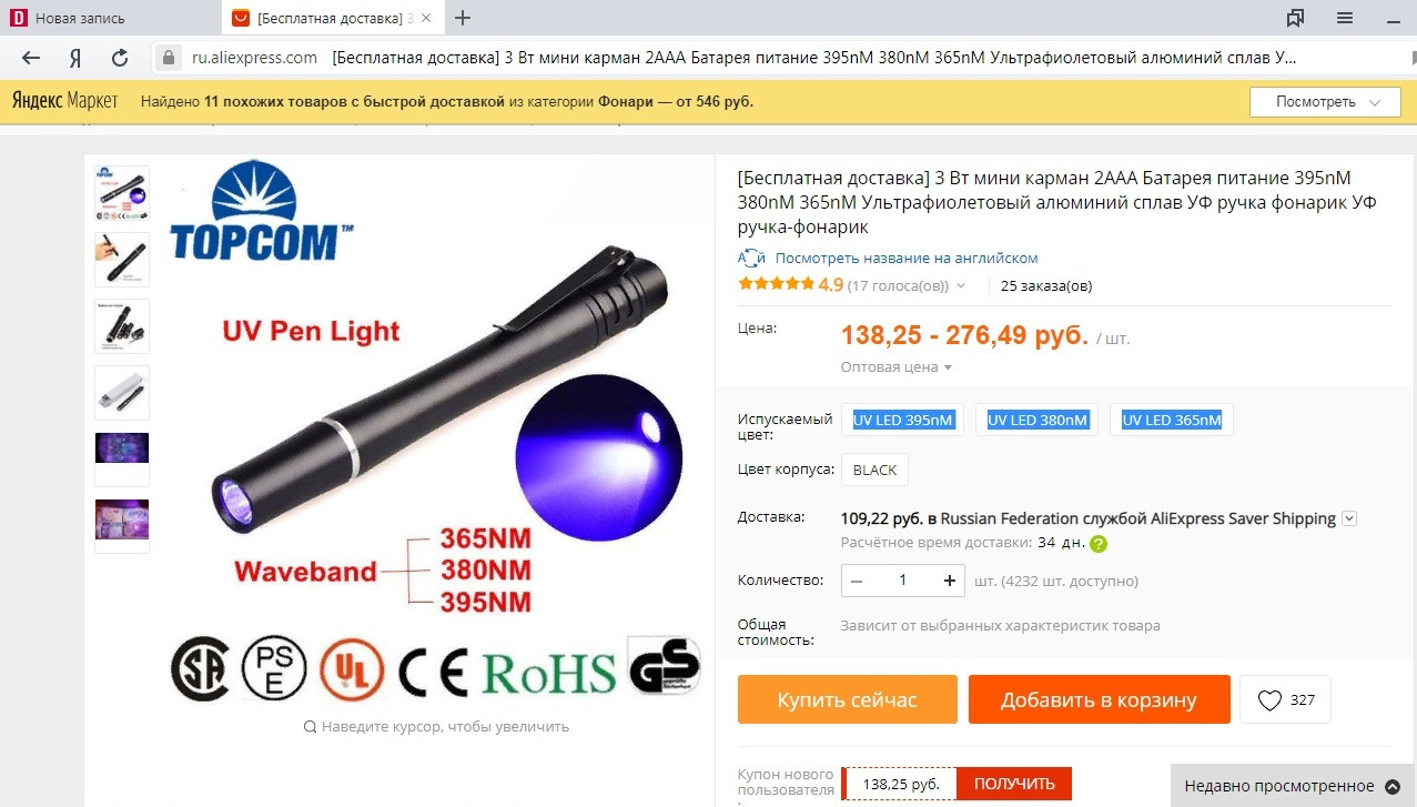 Озадачился купить ультрафиолетовый фонарик, но какой взять не знаю.