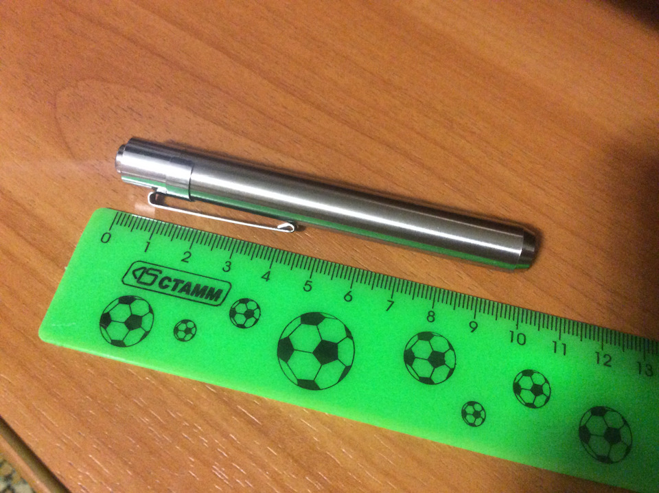 Корпус железный, на вид и ощупь крепкий. Длина его 10см и использует одну батарейку ААА.