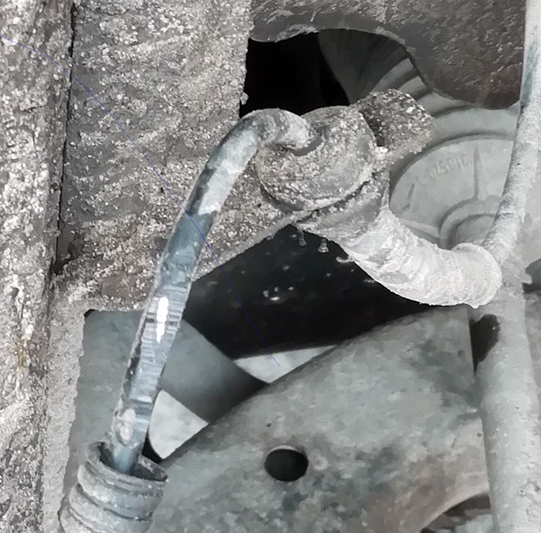 видимо когда слетал с крепления и об колесо, было как то давно провод болтался. руками поставил обратно провод в крепление и всё, но тогда не обратил внимание протерло или нет, колесо то не снимал