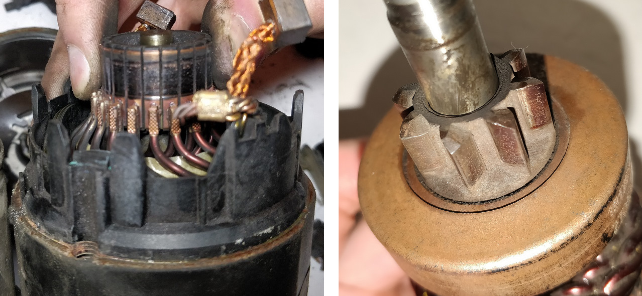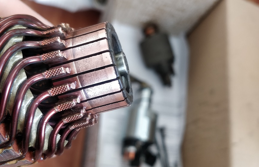 Зубья бендикса были в хорошем состоянии, функционал бендикса тоже в порядке (свободно крутится только в одну сторону) а вот коллектор якоря требовал чистки, но не имел сильной выработки: