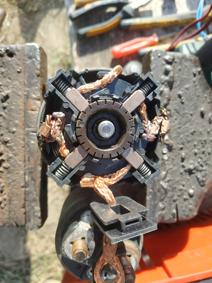Поэтому я сделал так: Снял все пружины щеток и отодвинул их от центра -> установил якорь -> подвинул щетки к коллектору -> вставил пружины -> установил текстолитовую крышку на щеткодержатель: