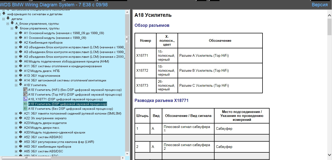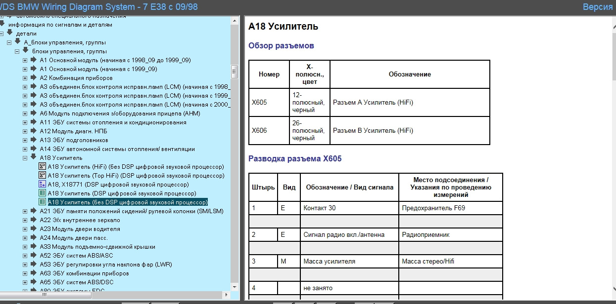 Первое время пришлось немного вникать в схемы, откуда и куда все идёт, но поверьте там есть навигация и описание каждого разъёма, обозначение цветов проводов и так далее.Поэтому через 2-3 дня я можно сказать«вкурил»все это дело и для меня WDS стала 2«Библией BMW» после .