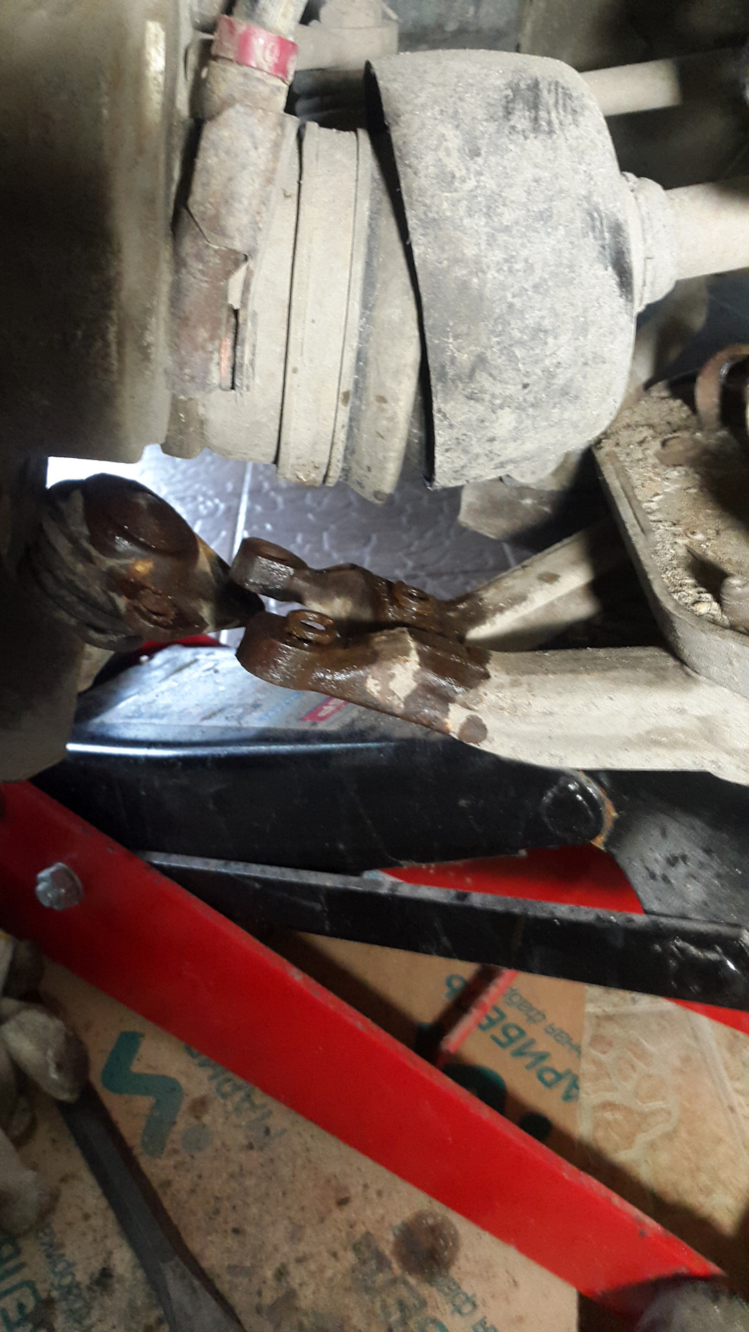 И так поехали. Сливаем масло из редуктора переднего моста и переливаем его в пустую канистру, получилось около 1 л. Отворачиваем регулировочную гайку подшипников ступицы и снимаем конусную втулку. Отсоединяем нижнее крепление амортизатора от опорной чашки пружины нижнего рычага. Отсоединяем нижнюю шаровую опору от нижнего рычага передней подвески. Болты закисли намертво, но подались. Так, что купите за ранее комплект на шаровую. Отводим поворотный кулак в сторону и выводим хвостовик корпуса наружного шарнира из ступицы. Головкой на 19, сверху отворачиваем болт крепления кронштейна переднего моста к правому кронштейну опоры силового агрегата. Головкой на 13 отворачиваем гайки крепления кронштейна переднего моста и крышки подшипника корпуса внутреннего шарнира к картеру редуктора. Отводим кронштейн крепления переднего моста. Поддеваем монтажной лопаткой крышку подшипника корпуса внутреннего шарнира за приливы. Выводим корпус внутреннего шарнира из редуктора. Снимаем привод в сборе. Счишаем остатки прокладки с обоих сторон. Далее разбираем сам привод. Снимаем стопорное кольцо, с помощью щипцов или кто как может. Снял двумя отвертками. Извлекаем пружинную шайбу. Сбиваем с вала крышку подшипника, вместе с подшипником с помощью молотка через деревяшку. Снимаем подшипник корпуса внутреннего шарнира. Из проточки пассатижами извлекаем установочное кольцо. Снимаем крышку подшипника с сальником. Вынимаем сальник из крышки. Смазываем поверхность нового сальника герметиком и запрессовываем его в крышку. А дальше в обратной последовательности. В подшипнике был обнаружен люфт и соответственно заменен на новый. Работа заняла часа четыре. Для сведения. Гайка крепления крышки подшипника корпуса внутреннего шарнира М6х1,25 закручивается с моментом 19,6-24,5 Нм (2,0-2,5кгс·м). Регулировочную гайку подшипников ступицы затягиваем моментом 19,6 Нм (2,0 кгс·м), одновременно проворачивая ступицу в обоих направлениях. После этого ослабляем регулировочную гайку и снова затягиваем ее моментом 6,86 Нм (0,7 кгс·м). Затем опускаем гайку на 20-25˚. Проверяем зазор в подшипниках: он должен быть в пределах 0,02-0,08 мм. Стопорим гайку. Всем удачи на дорогах!