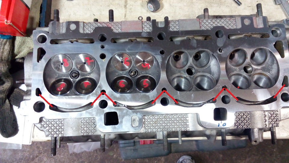 Вчера был проведен результативный день, решился на доработку гбц со стороны выхлопных каналов. Просверлил весь контур рубашки охлаждения (фото гбц не мое, с интернета)