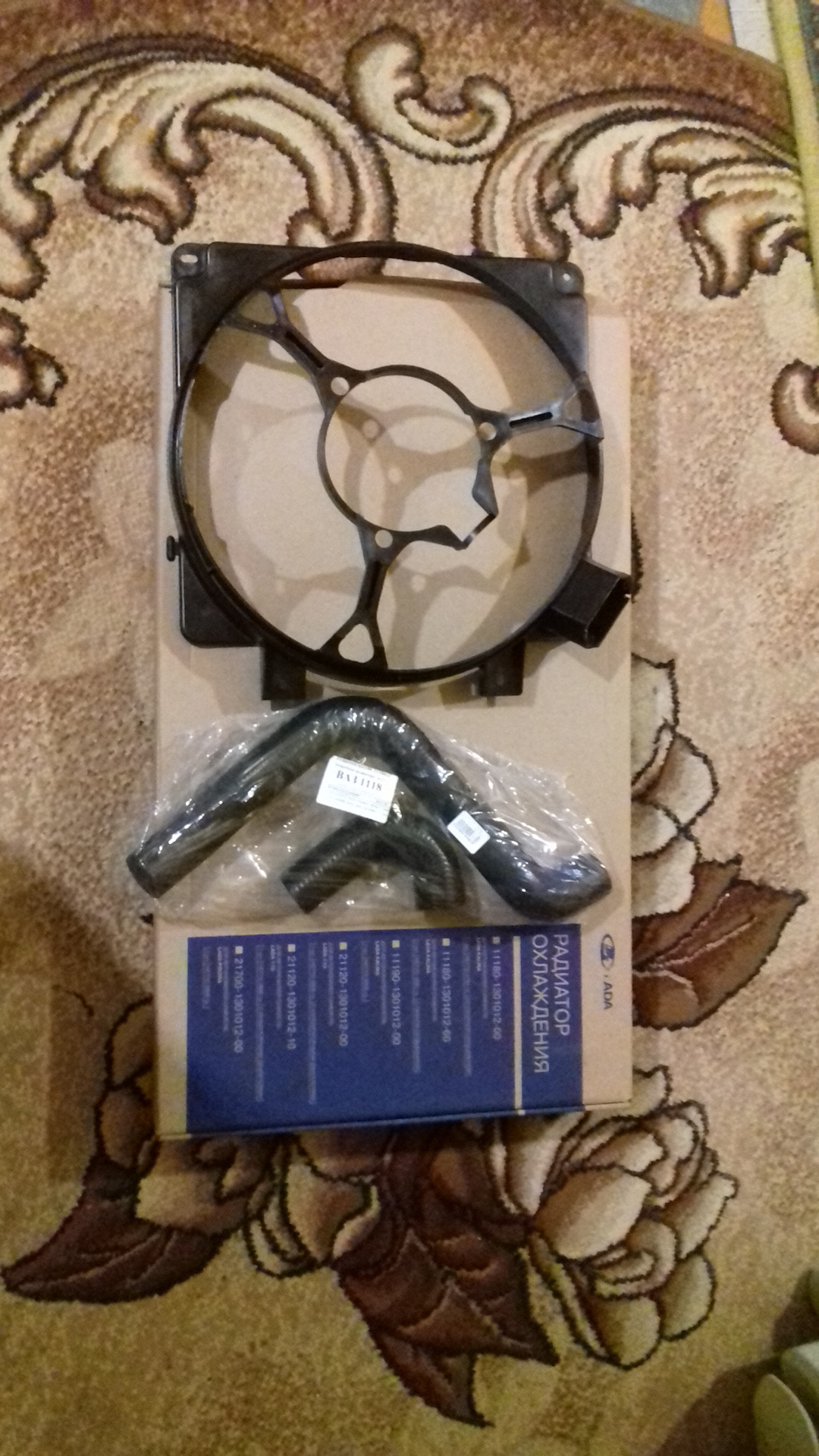 Всем Привет! В один прекрасный день приехал домой, открыл капот, и офигел, всё залито Антифризом, На грантовский оригинал цена конь))По этому решил заколхозить от Калины.Был куплен оригинальный радиатор Калиновский за 2500, патрубок верхний, отдельно не было по этому взял комплект, и диффузор Калиновский, собственно и всё, а ещё антифриз 8литров.