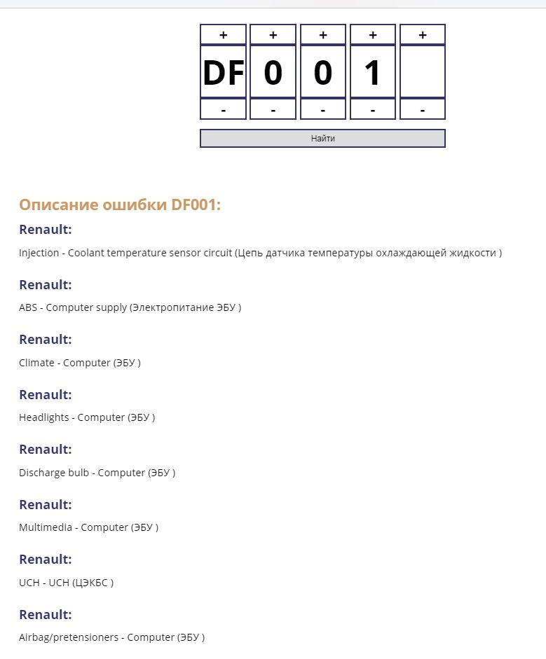 В виду проведения легкой, скоротечной и бесплатной диагностики высветились ошибки DF001, DF066, DF101, DF152, DF202. Воспользовавшись сайтом РАСШИФРОВКА КОДОВ ДИАГНОСТИКИ OBDII/EOBD имеем следующее: