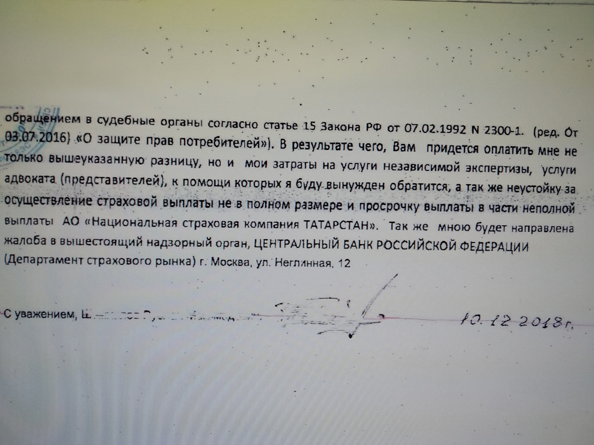 Доброго времени суток! Ни как не придет к концу разбирательство после небольшого ДТП, которое имело место быть еще в прошлом году. Из повреждений: Бампер под покраску, два штатных датчика парковки (перестали работать). Все начиналось вроде бы ничего так. Оформление ДТП. Сдача материала в страховую компанию и осмотр автомобиля. И вот в течение положенных 20 дней мне произвели выплату в размере 6,298 рублей. Как я понял, страховая возместила только покраску бампера. Без парктроников. Так же, по моему мнению, они должны были посчитать демонтаж/монтаж бампера. Хотя не уверен. Далее был звонок от представителя страховой, пытались узнать, насколько я доволен предоставленным мне сервисом. Ответ был исчерпывающий. Порывшись в инете, я настрочил в страховую досудебную претензию. Правда, так сказать неполноценную, т.к. к ней я не приложил акт независимой экспертизы, которую я не проходил. Думал, авось прокатит?! Не прокатило) Но они предложили мне пройти повторный осмотр, на что я конечно же согласился. При первичном осмотре задний бампер не был снят. Во второй раз я уже поехал со снятым бампером, чтоб они наглядно увидели эти датчики парковки. Представитель страховой при осмотре указал мне, что из повреждений, датчики кроме царапин ничего не имеют. Крепления целы. А вот если бы они треснули пополам, то да, точно оплатили бы. После того как я наглядно продемонстрировал ему что они не работают, он сказал что в акте укажет их неисправность, а там уже как в головном офисе решат. В общем поймали в этом самом головном офисе тишину. Оставалось либо смирится с тем что дали, либо пройти экспертизу и идти до конца. Но ведь сумма, которую должна доплатить страховая, должна как минимум покрыть все расходы на экспертизу, и судебные издержки, если пойти на принцип и дело дойдет до суда. Примечательно, что если расчёт независимого эксперта будет отличаться менее, чем на 10% от озвученного страховой, то суд даже рассматривать дело не будет, т.к. 10% заложены в "погрешность" расчёта. Как оказалось расчет стоимости запчастей при выплате по ОСАГО рассчитывается на оф. сайте РСА. Какого же было мое удивление, когда вбив артикул, я увидел стоимость одного датчика в 35,100 рублей! (минус 50% с учетом износа) У оф. дилера в городе стоимость составляет 6,200 рублей, а в EXISTе и того 1,800 рублей. В общем нашел эксперта в столице г.Махачкала, который подтвердил возможность провести экспертизу и забраковать датчики. Попробуем прижать страховую. Продолжение следует…
