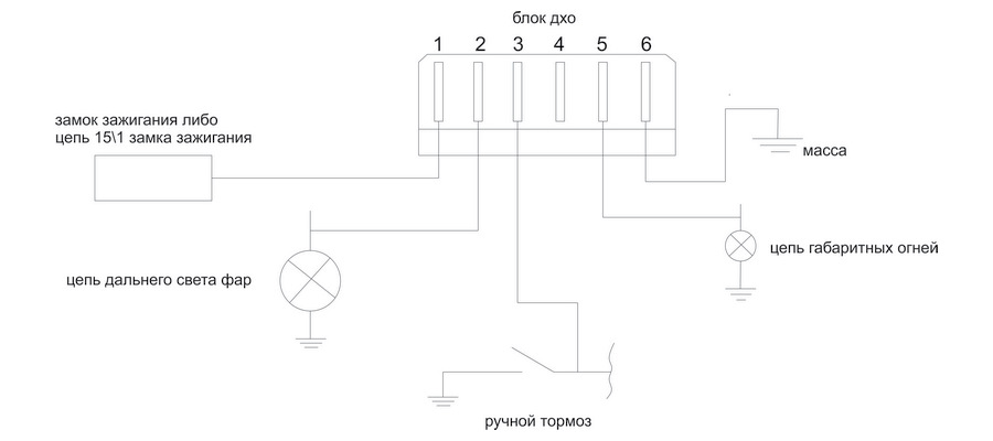 Все управление блоком осуществляется штатным переключателем режимов на руле. Свет/габариты/OFF или затянутый ручник отключают ДХО.