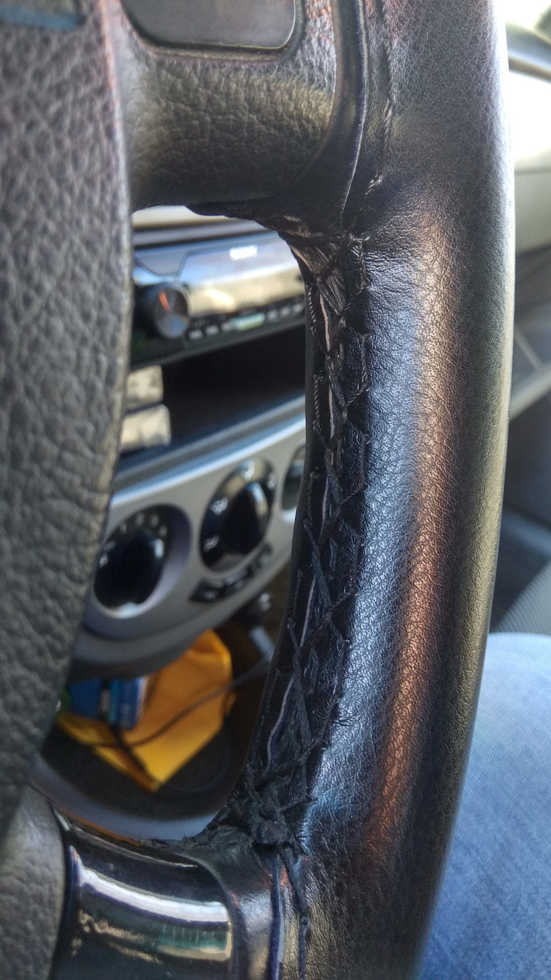 При покупки авто, "кожа" на руле была в не очень хорошем состоянии, решил заказать на пробу самую дешманскую оплетку. Оплётка оказалась чуть шире чем руль, пришлось с каждой стороны отрезать по 3 миллиметра. Пусть и не надолго но рукам стало очень приятно держаться за руль, как облезит закажем подороже, ведь опыт теперь есть))