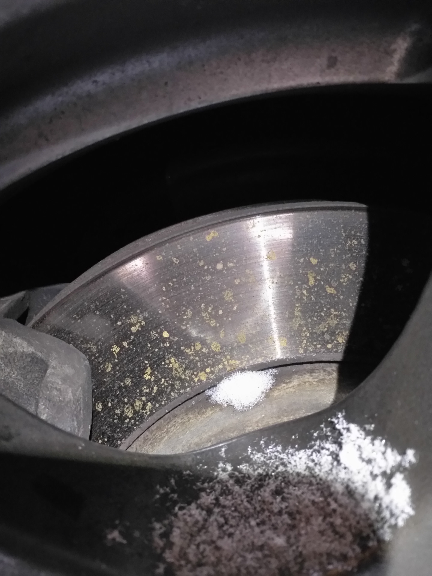 Встает вопрос — кто виноват (и почему на родных передних дисках с родными колодками такой фигни нет)