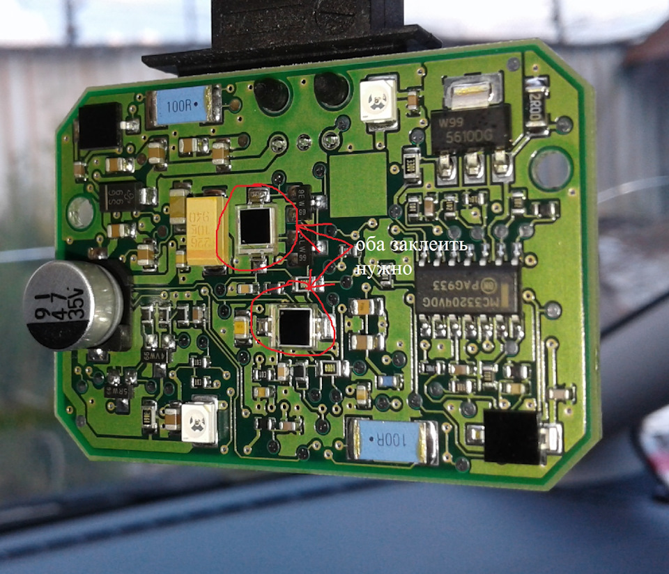 Подскажите пожалуйста где именно нужно заклеить чтобы в положении авто посмоянно горел ближний свет?