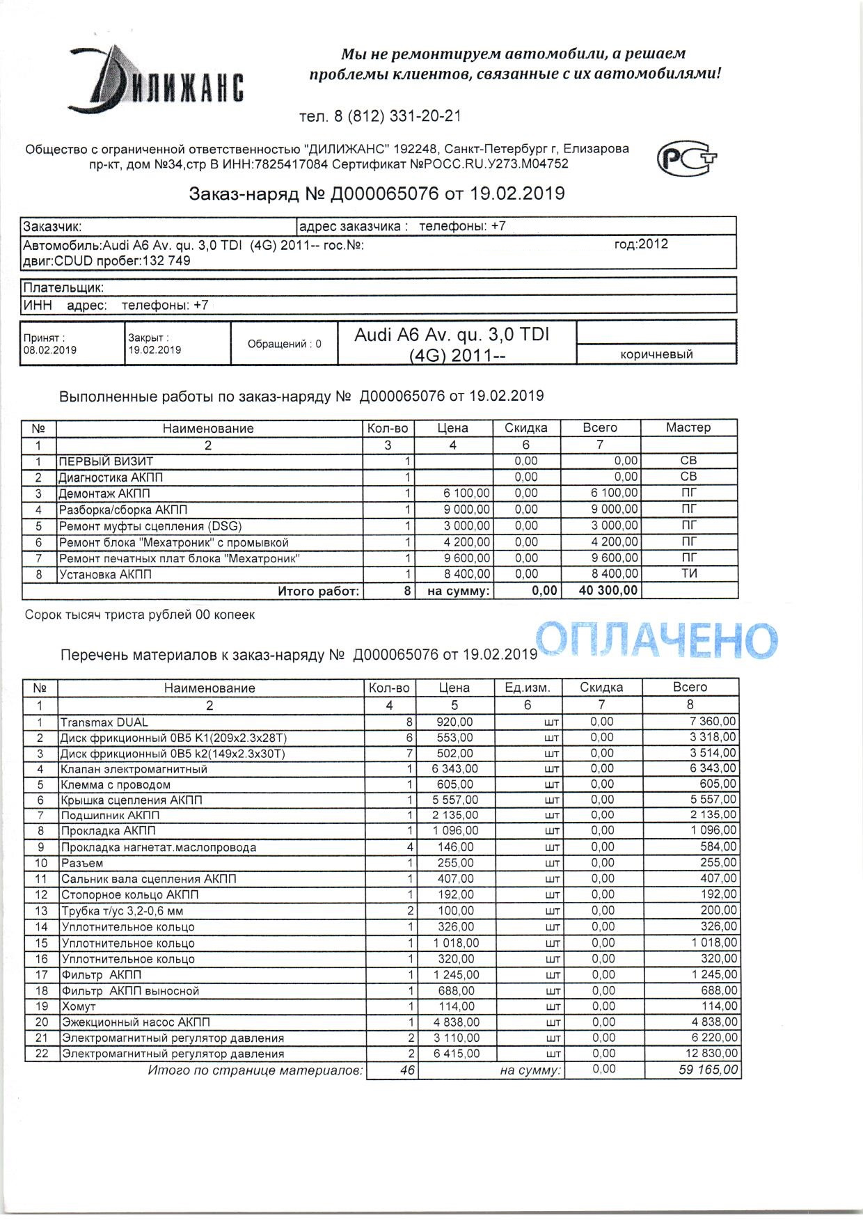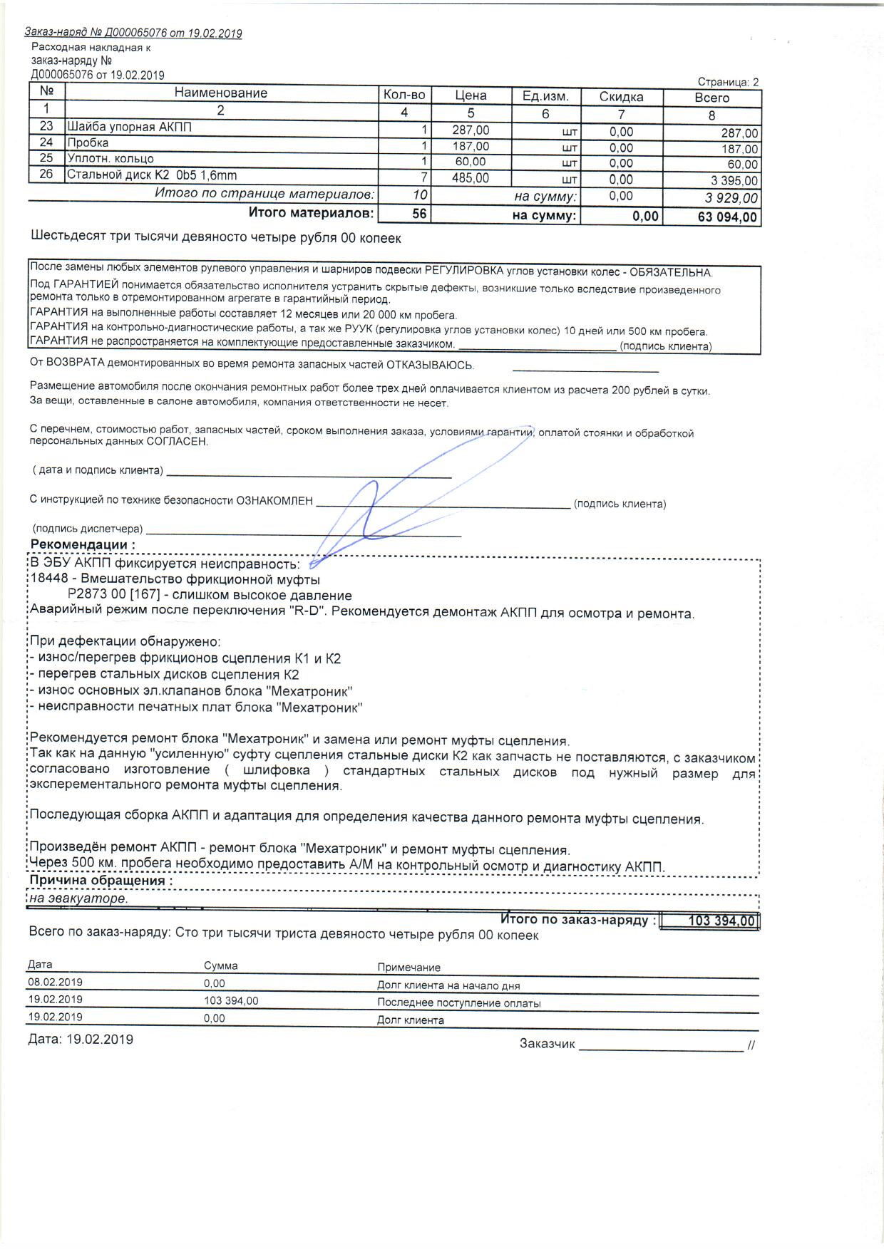 Коробку отремонтирована в Дилижансе, расчет прикладываю, не дешево конечно получилось. Пока обкатываю, но уже понятно что нужно перепрошить коробку под новое ПО.