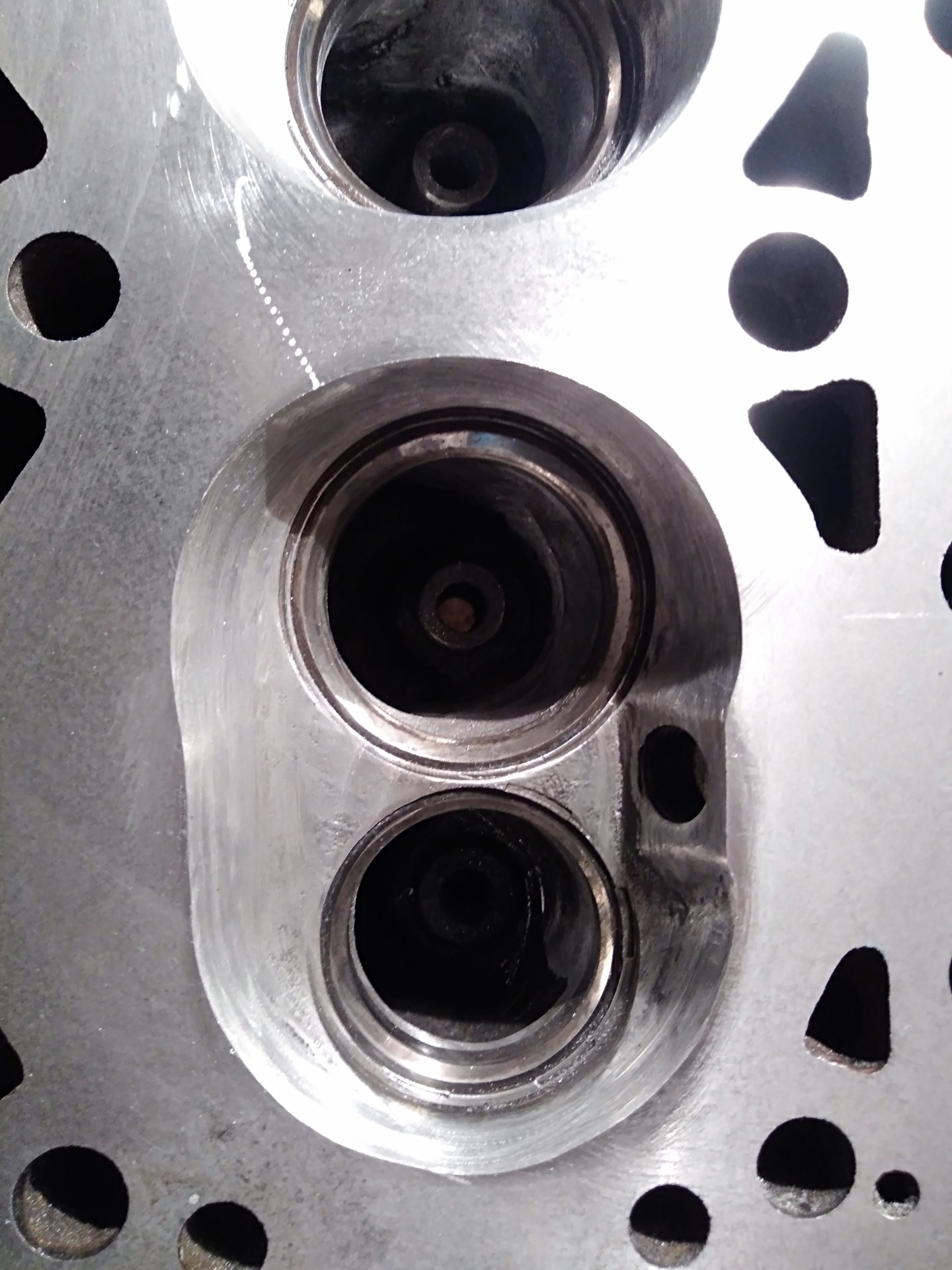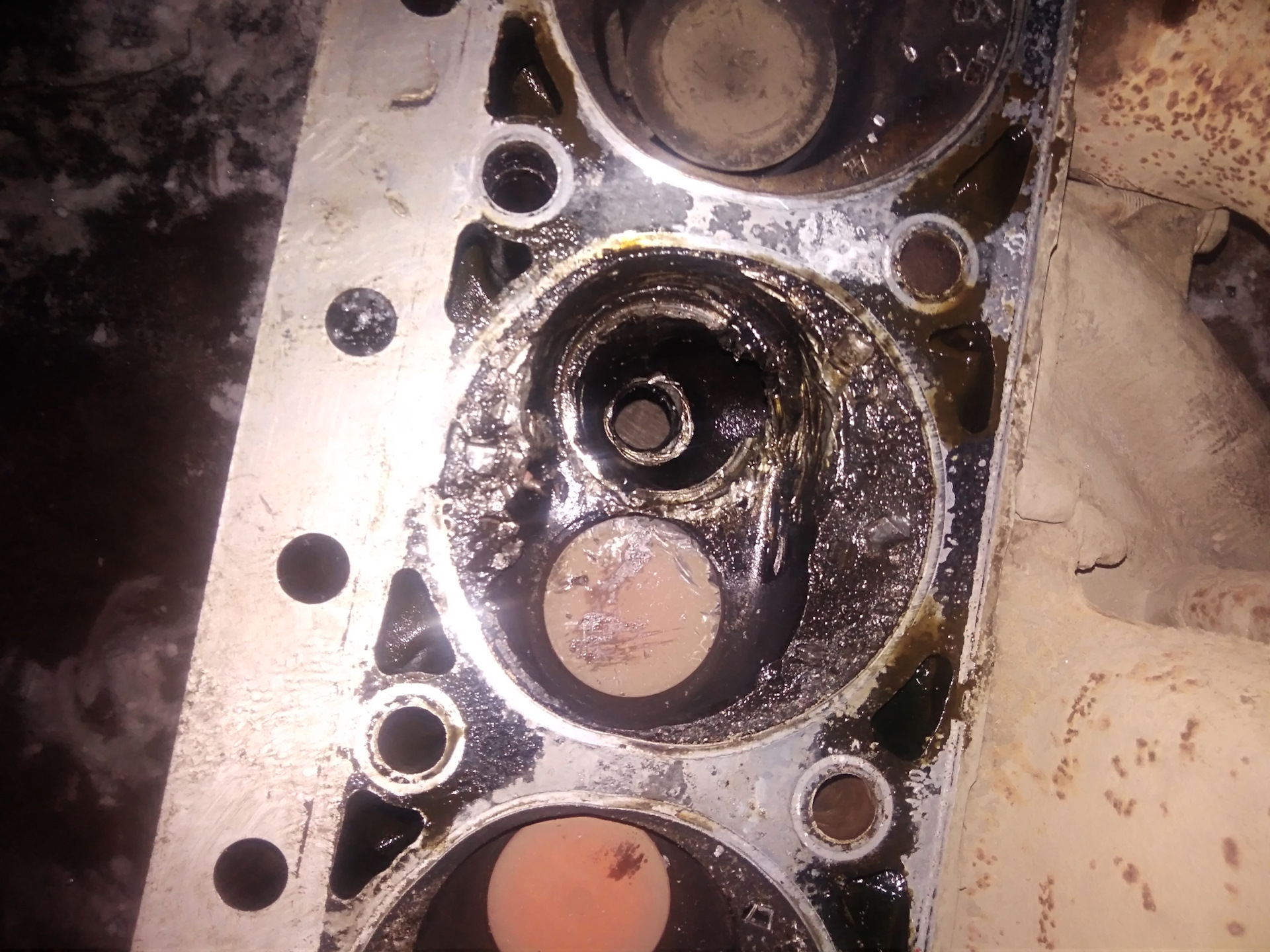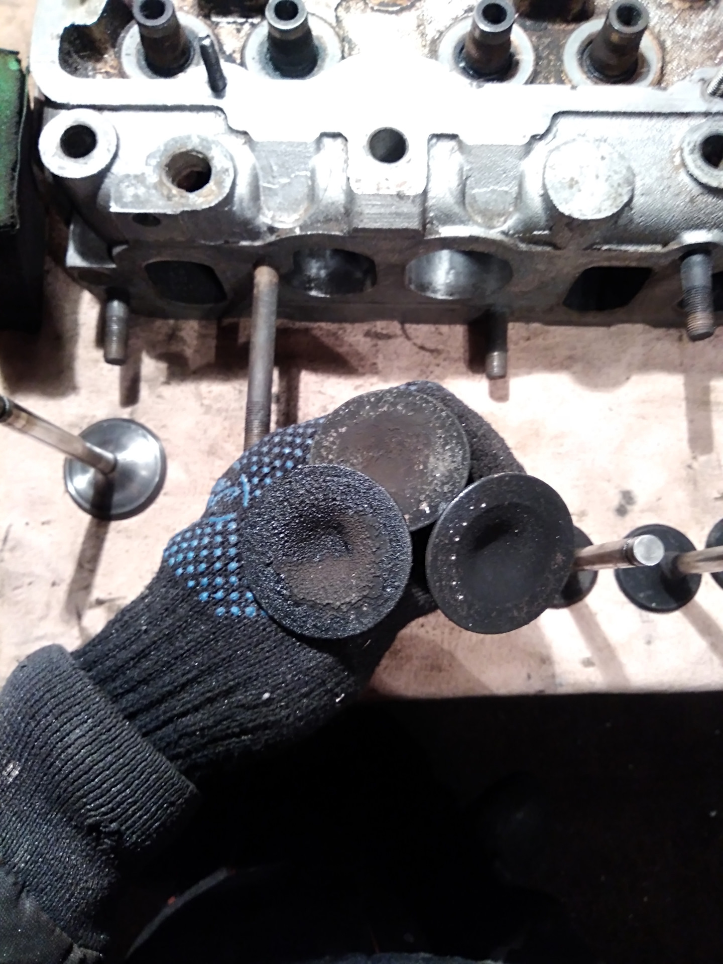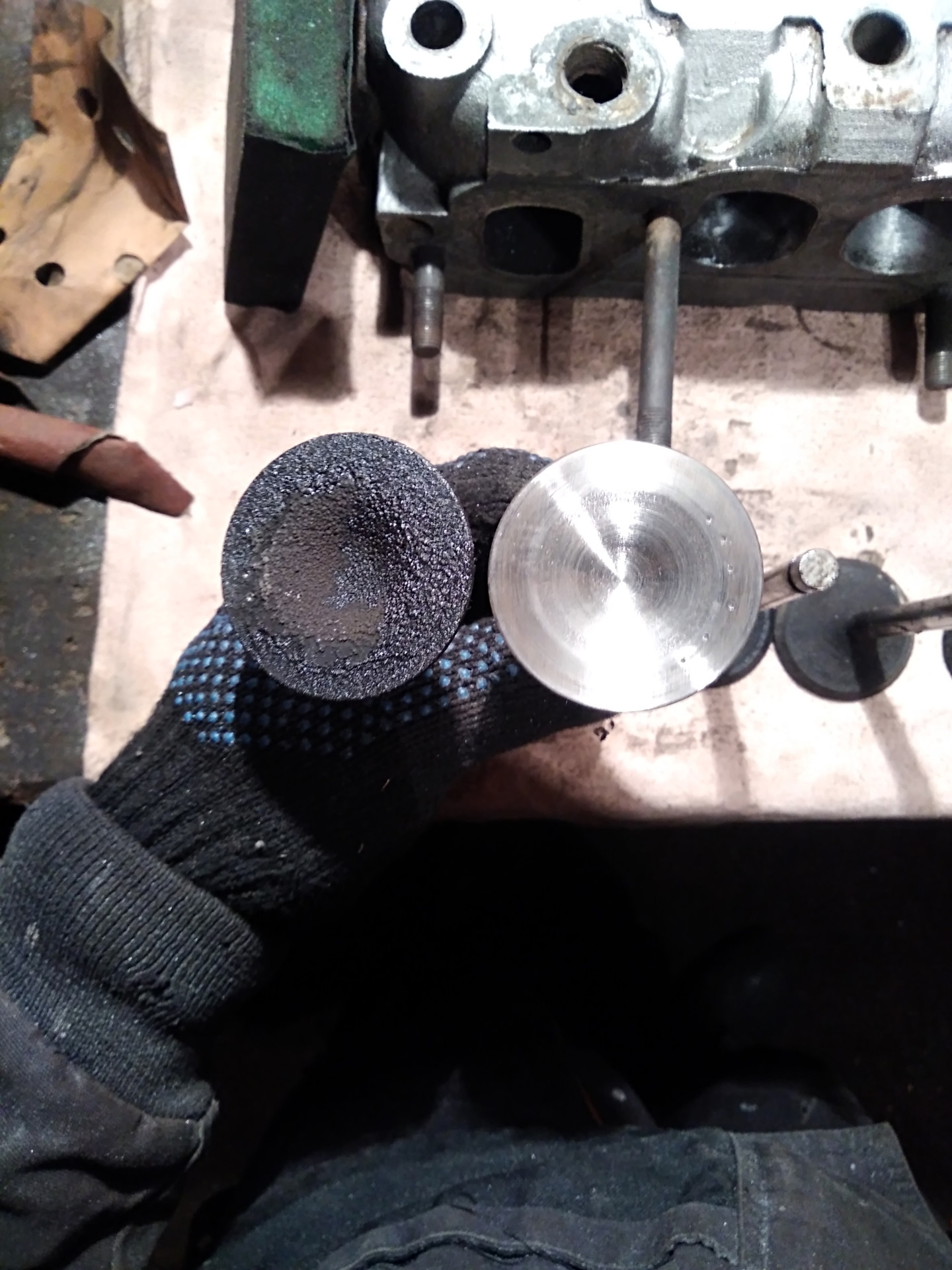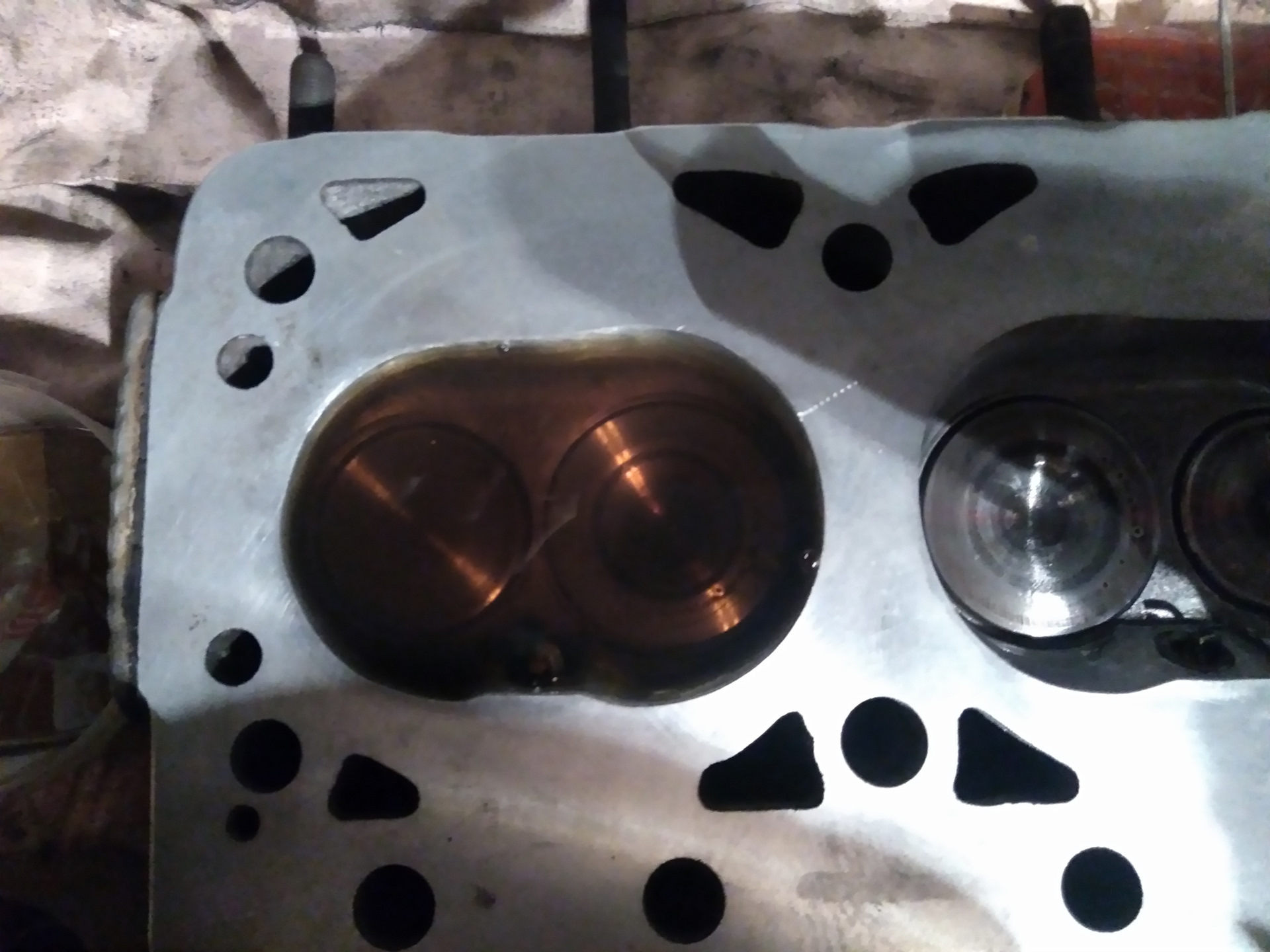После того как моя голова отправилась на покой ( ранее писал: выпала направляйка, сломало клапан, сломало седло и обломками все размалотило) мне довольно быстро добрый человек подогнал другую ГБЦ. Голова была старого образца на ней наверное ещё Ленин ездил, стояла на 417м моторе и была в подушатанном состоянии. Для начало все разобрал и осмотрел состояние, рокера с большой выработкой, колпачки дубовые, все грязное и в нагаре, клапана, седла и направляйки целые. Замерил высоту оказалось 98мм под 80й бензин. Помыл все и отдал на шлифовку. Спилили 3мм под 92 бензин. И тут я решил слегка увеличить камеру вокруг впускных клапанов, для этого был приобретен гравёр с набором насадок, я о нем и так давно мечтал а тут раз уж необходимость не смог себе отказать. Для начала положил прокладку на ГБЦ и обвел ее чтобы не вылезти за границы дозволенного. Затем нарисовал сколько хочу сточить и начал процесс шлифовки. Впринципе время ушло не много, примерно 3 часа, затем отшлифовал все впускные и выпускные каналы и сточил там все ступеньки и шероховатости оставшиеся после некачественной заводской отливки. После того как закончил с головой, принялся за клапана они были в толстом слое нагара, пришлось потратить кучу времени чтобы привести их в чувства, затем притёр их к седлам. После этого насадкой с металлической щеткой отчистил весь нагар со стороны коромысел и думал что на этом все закончено осталось только собрать. Но тут один товарищ pavell11 подсказал мне что обязательно нужно проверить объем камер сгорания иначе двигатель будет не ровно работать. Для этого я взял бензин и шприц и по очереди заливал в камеры сгорания бензин и шприцом высасывал его тем самым замеряя объем. Оказалось что я очень точно их расточил объем камер в среднем составил 74,5 -75 милилитров, разница не более 0,5 мл. Теперь предстоит процесс сборки.
