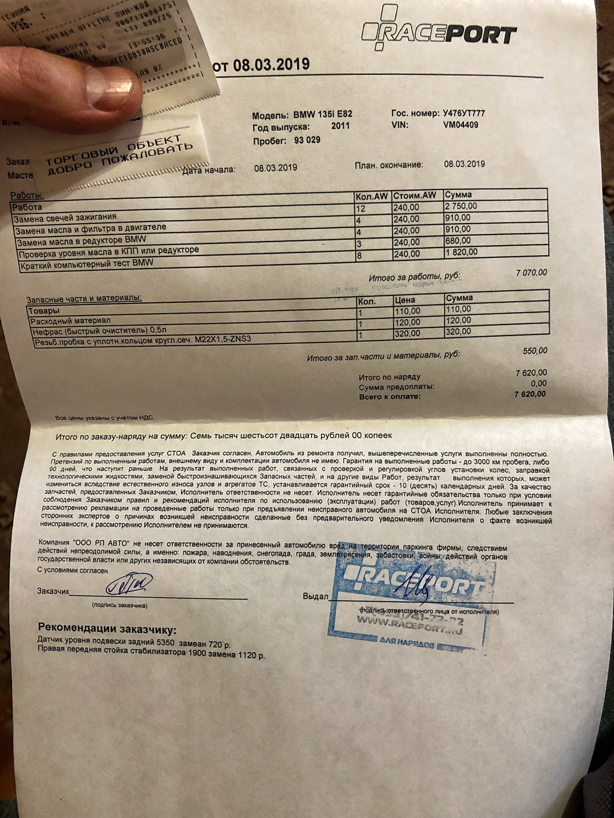 По результатам комп. диагностики была выявлена ошибка по Valvetronic, провели его адаптацию, на что ушло 8 минут, было отчетливо слышно как он работал и разгонялся).Со слов мастера, данную ошибку мог вызвать пониженный заряд аккума, так как за зиму он малость подсел.Так же, при длительных простоях он имеет тенденцию закисать. Ещё одна ошибка была по заднему датчику дорожного просвета, его в результате необходимо будет заменить и это я сделаю в ближайшее время.По ходовой части приговорили правую переднюю стойку стабилизатора, ее я поменяю в ближайшее время. А теперь о приятном, добрался я до поддона DCT, проверили уровень и качество масла, уровень на максимуме, масло свежее!Коробка была полностью обслужена на 75 тыс км и об этом мне говорил предыдущий хозяин, а я ещё раз убедился в его порядочности!