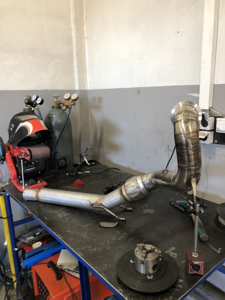 Работы по выхлопу начались с изготовление кастомного даунпайпа и удаление катализатора, доверился ребятам с компании G-Tuning, справились быстро и качественно, звук выхлопа стал сочнее и громче, но при этом не давит на уши, так как прошит я в Revo то о никаком етбире речи быть не может. Звук нравится настолько что задался вопросом нужен ли мне кет бэк или просто наварить нормальные насадки и оставить как есть.