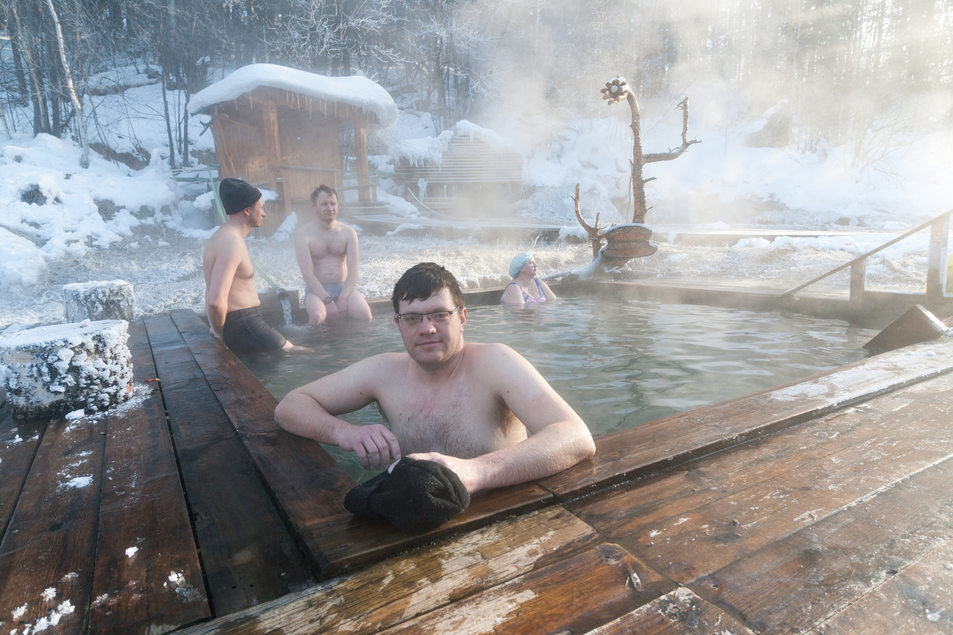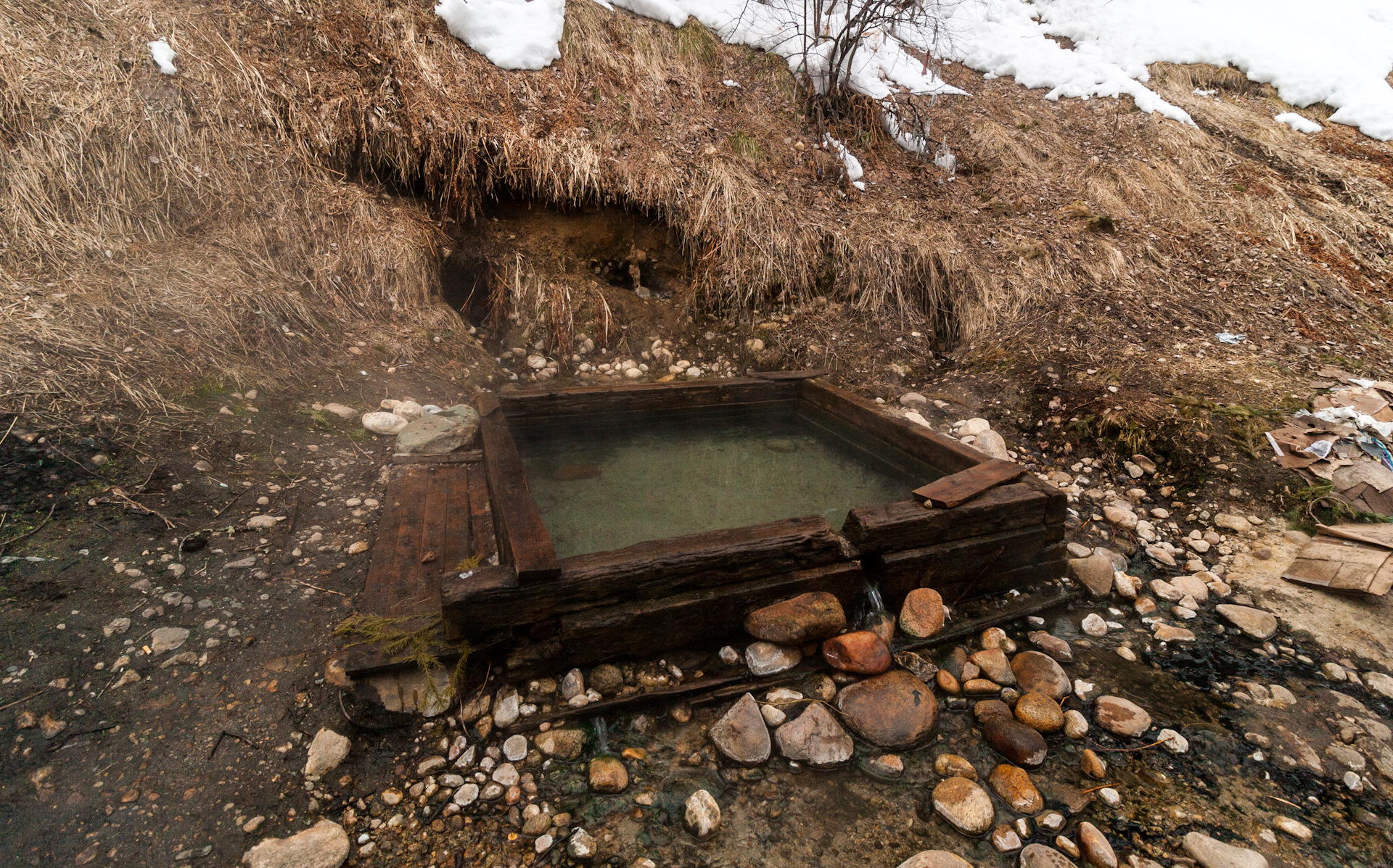 Мне здесь понравилось даже больше! Может тут не бассейн, и глубина не та, но зато как душевно. И бесплатно. Переодеться есть где. Только дорога сюда хуже, но можно машины у базы оставить и дойти пешком через их территорию. Очень радует, что не загубили «дикий» источник, как это делает большинство курортов.