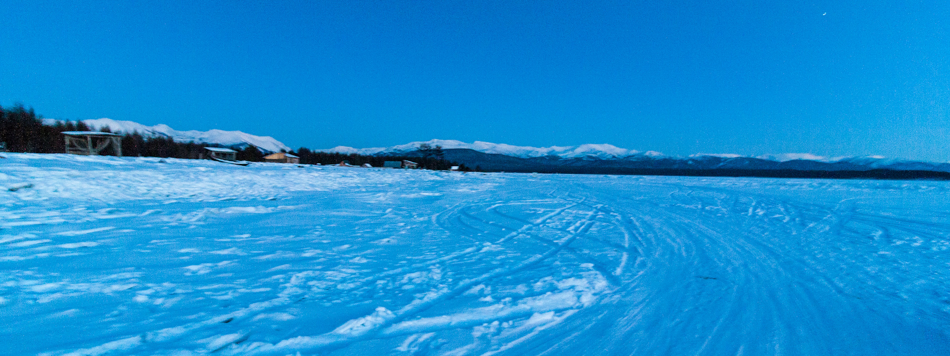 Оказывается отсюда ехать целых 30 километров до Хакусов. В темноте, по льду… Даже несмотря на снег в темноте можно заплутать на развилках, хорошо, что трек есть – спасает.