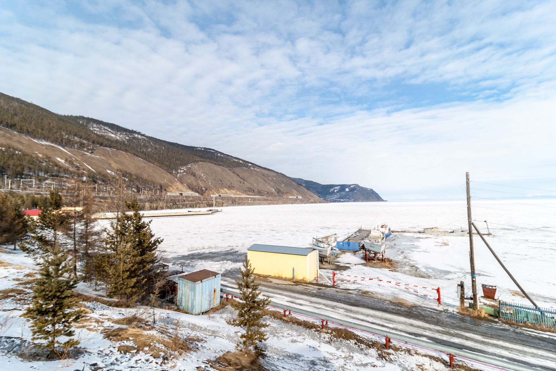 Трасса сейчас сплошной гололёд. Причём возникает ощущение, что скользишь по ней гораздо сильнее, чем в Иркутске. Может не посыпают, может снег\лёд здесь другой – не знаю… Но чистят хорошо, местами снежные отвалы большие.