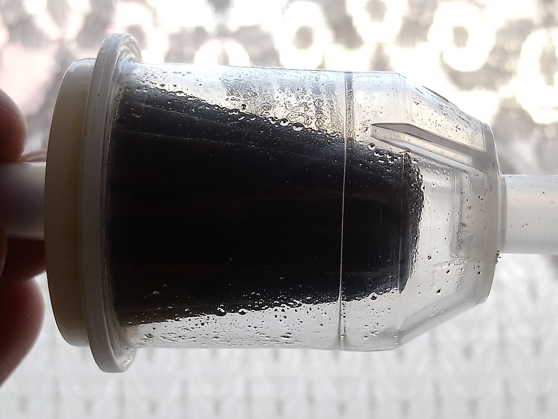 . Завел и дал поработать с пол часа на нем. В разрыв обратки поставил фильтр. Обратку в емкость с Wynn's — ом. Минут за 15 он стал черным. Делал все НА ПРОГРЕТОМ ДВИГАТЕЛЕ! Плохого ничего не случилось, есть мнение, что старый Wynn's не в цилиндрической банке был ядернее, резину ел и тд…