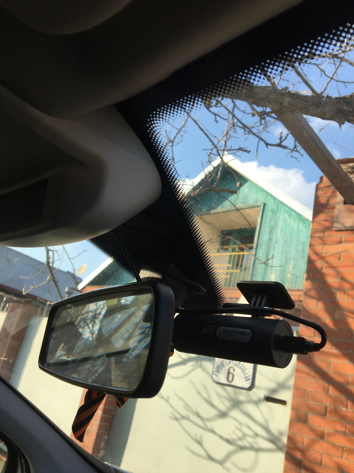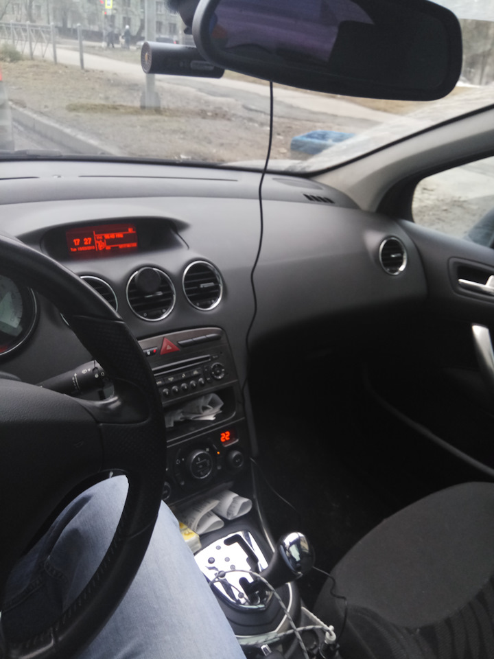 Провод почти не видно, но он есть. Однако сам регистратор виден с места водителя.