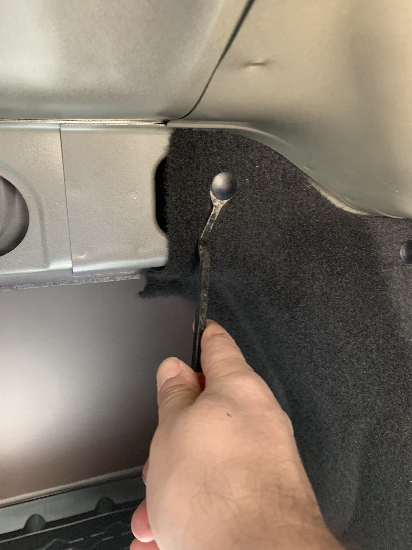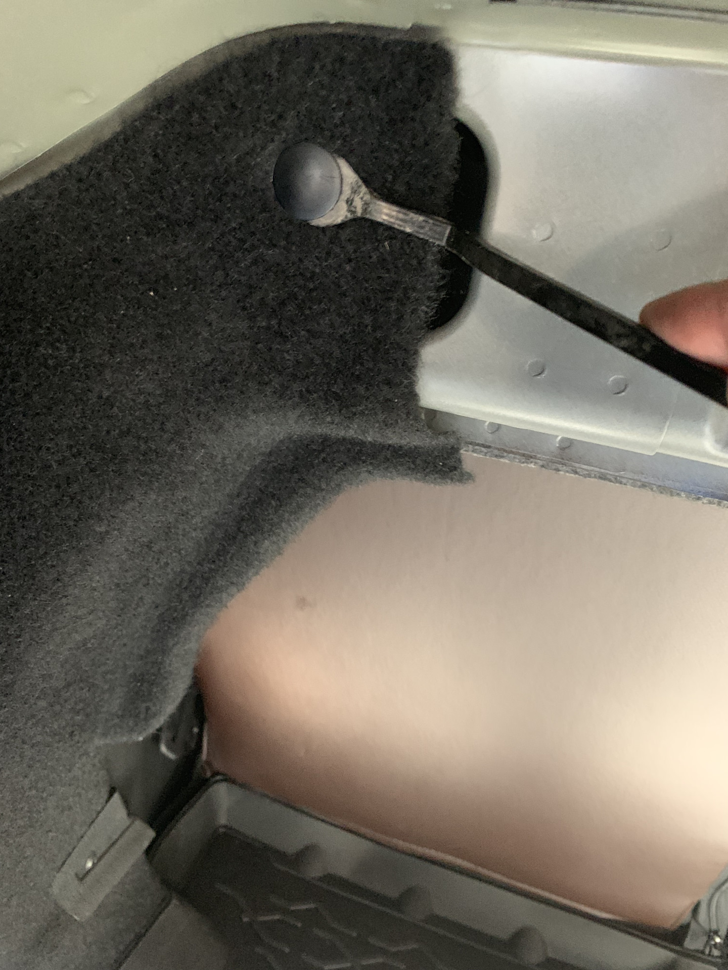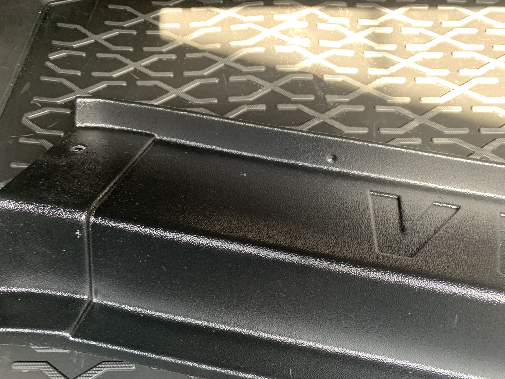 Приобрёл накладку в проем багажника. Надо было брать ворсовую. В накладке нужно сделать 4 отверстия под клипсы. Я дополнительно наклеил двусторонний скотч.