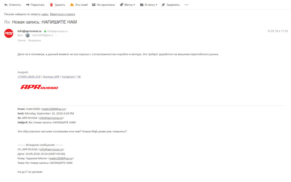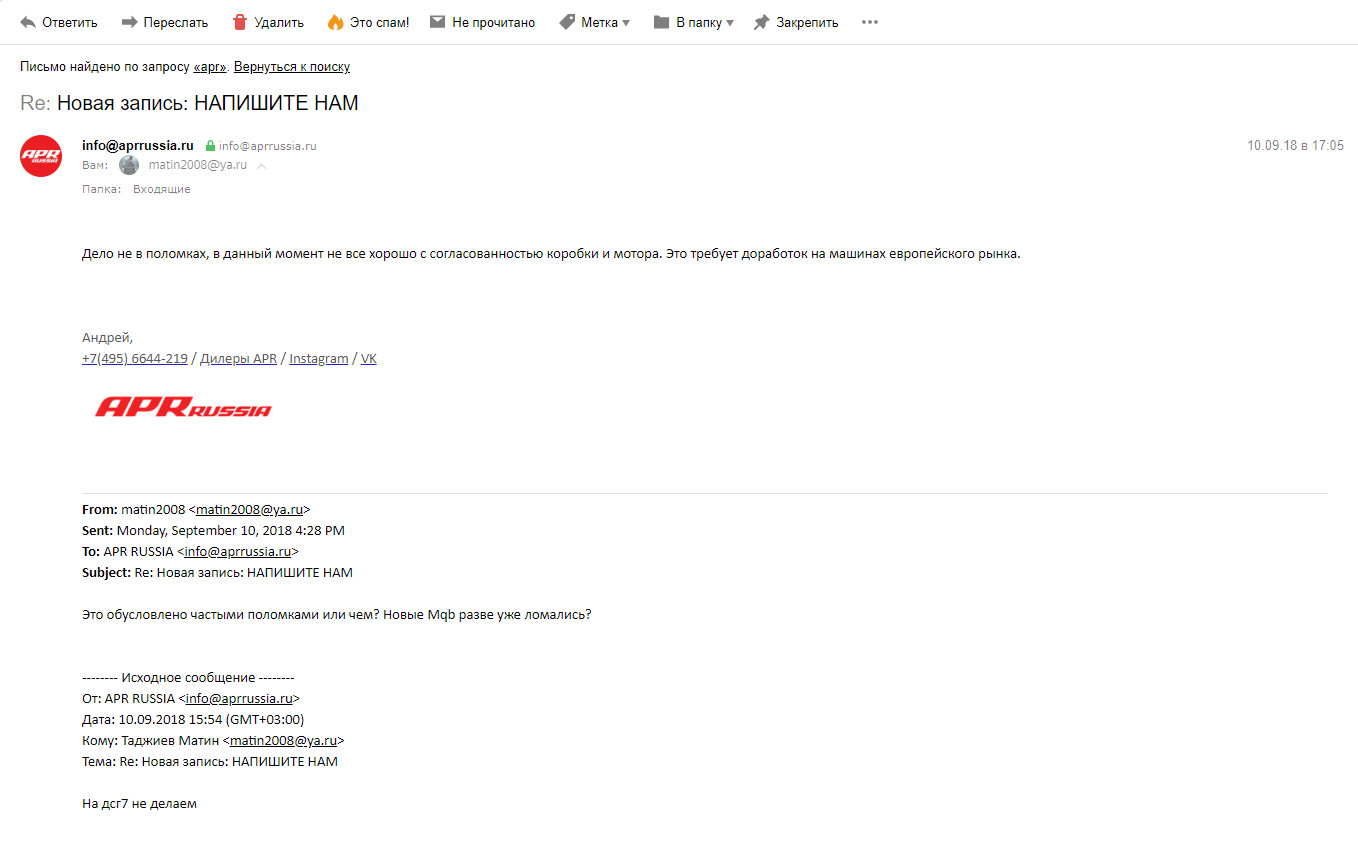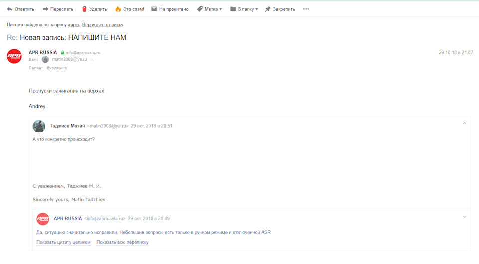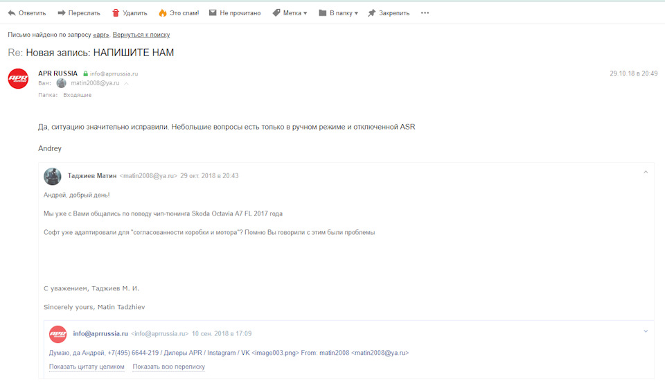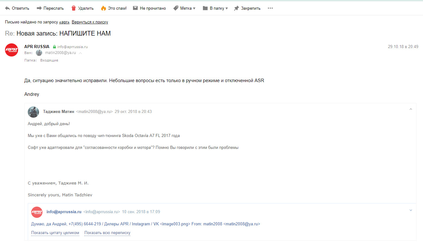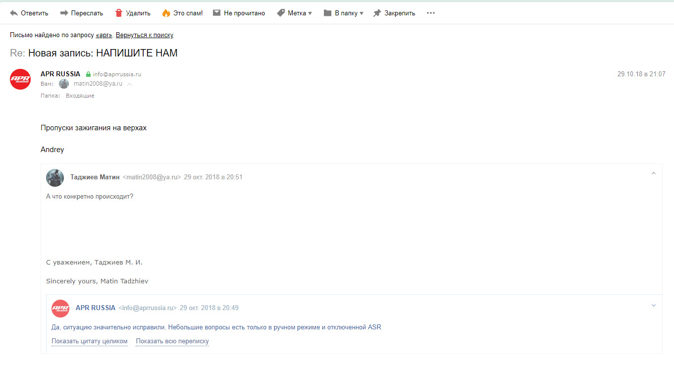 Смотри ниже, там есть еще переписка с АПР. Рево также отвечали, не могу найти письма сейчас