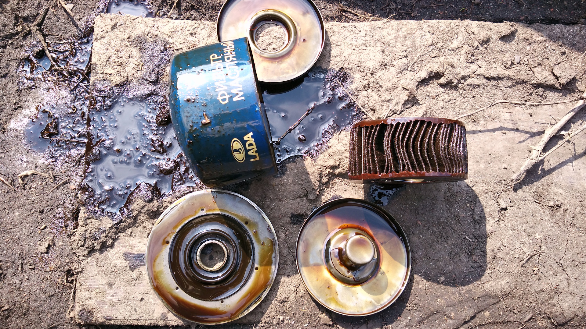 Всем привет. Решил я поменять масло после зимы. Вроде бы пробег на масле всего 5000, но так как зимой много прогреваешь да в тепле сидеть приятнее. И если посчитать по мото-часам там выйдет как раз почти 10 т.км как я обычно меняю. И вот 1 апреля теплый денек прям погода располагает заняться авто. Правда гараж был занят папан мастерит мини трактор пришлось на улице менять. Слил масло открутил фильтр и думаю дай я его вскрою посмотрю как он себя чувствует после 5000 км пробега вид скажу мне его очень не понравился на фото ниже все видно. Залил новое масло и новый фильтр как уже привык фильтр Базальт (не реклама) прошлый фильтр мне на ТО — 3 поставили. Фильтр не понятно как и чем там фильтровал походу гонял грязное масло по системе.