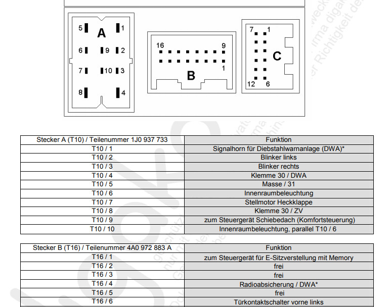 Вот, добавлю . Нарыл в свое время на немецких форумах, актуально для блоков с тремя колодками подключения, рестайлинг . Закину сюда, чтоб не потерялось ) ( Возможны неточности )
