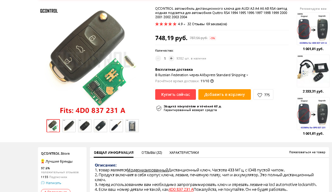 день добрый, господа! у меня Блок 8LO 862 257 G можно ли на него установить радио ключ? и что для этого надо. А6 С4 97 года.