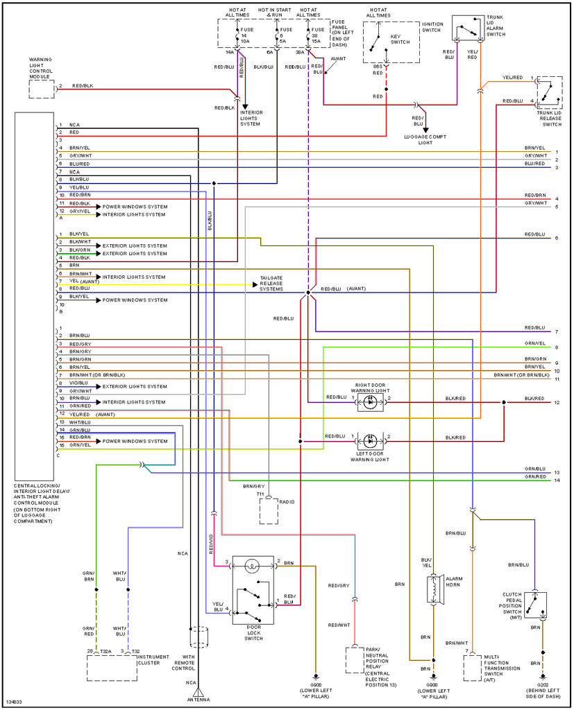 Вот привожу 4 основные распиновки и расположение разъемов на блоках центрального замка. Конкретно назначение контактов смотрите по схеме на свою модель и свой блок.