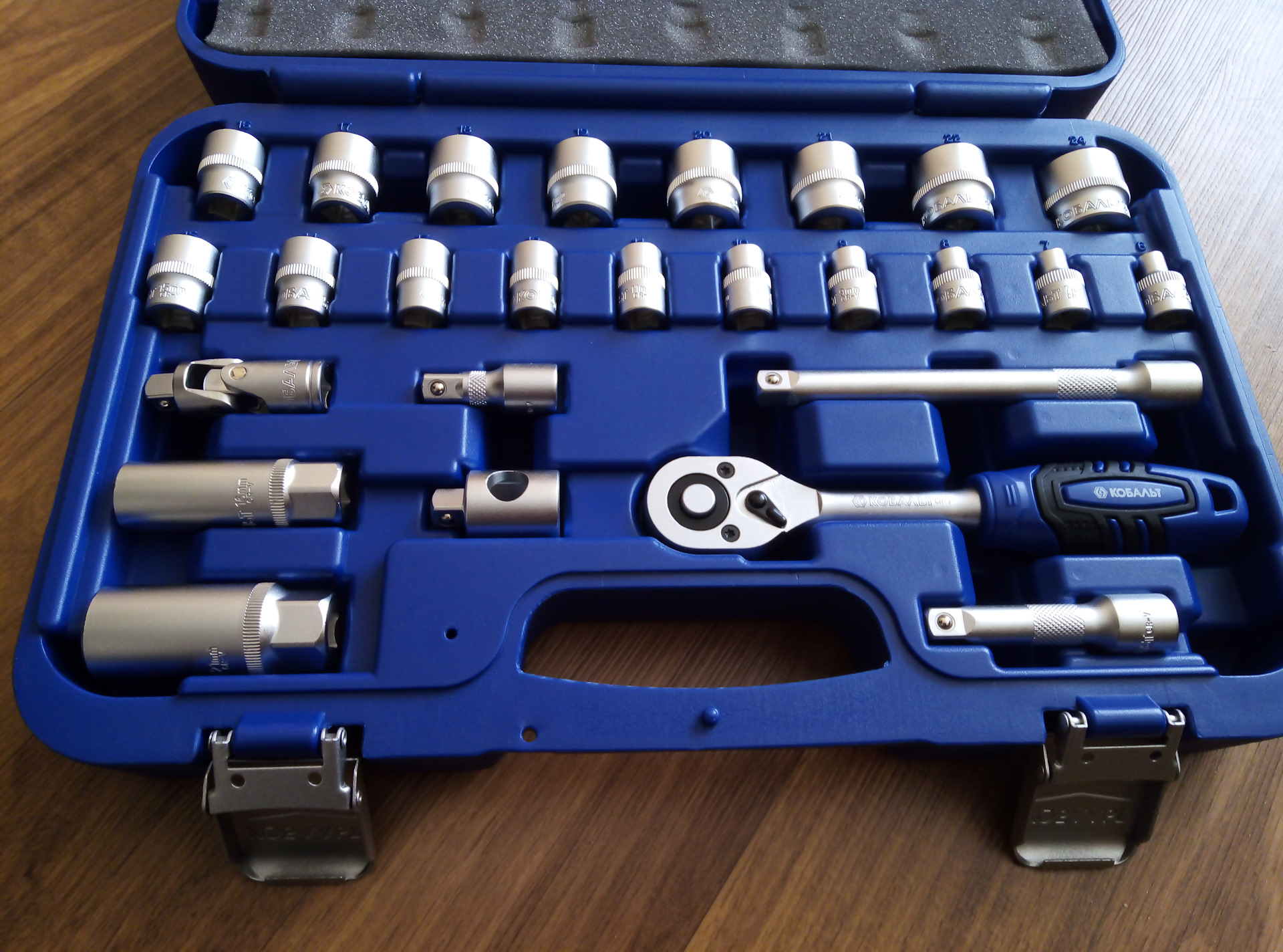 Инструмент на 3/8 мне вкатил. До этого им пользоваться не доводилось. Теперь этот чемоданчик скромных размеров на постоянку поселился у меня в багажнике. С несложными работами, не требующих больших усилий и момента, он справится спокойно.