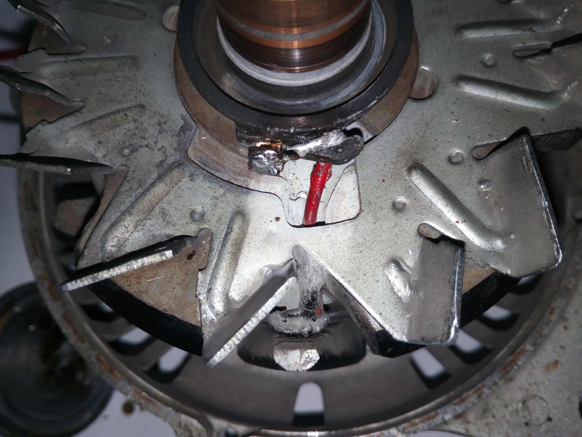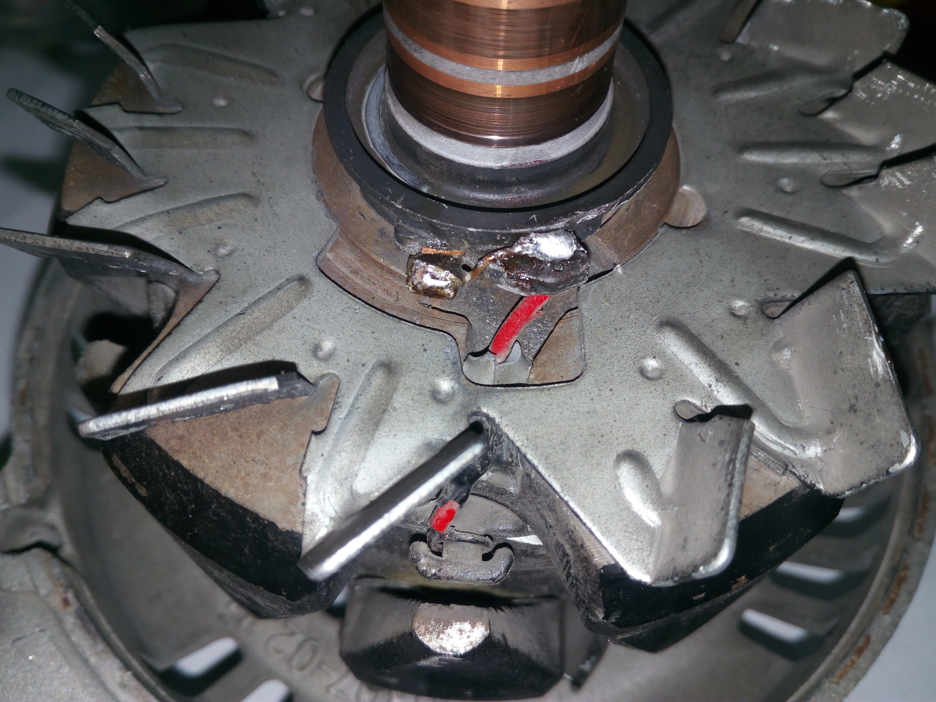 Обещанное про пайку. Провода в месте обрыва должны проходить через специальную проушину. Это, видимо, сделано что бы провода хорошо держались не смотря на центробежные силы. Когда же я их спаивал, то через проушины не продевал.