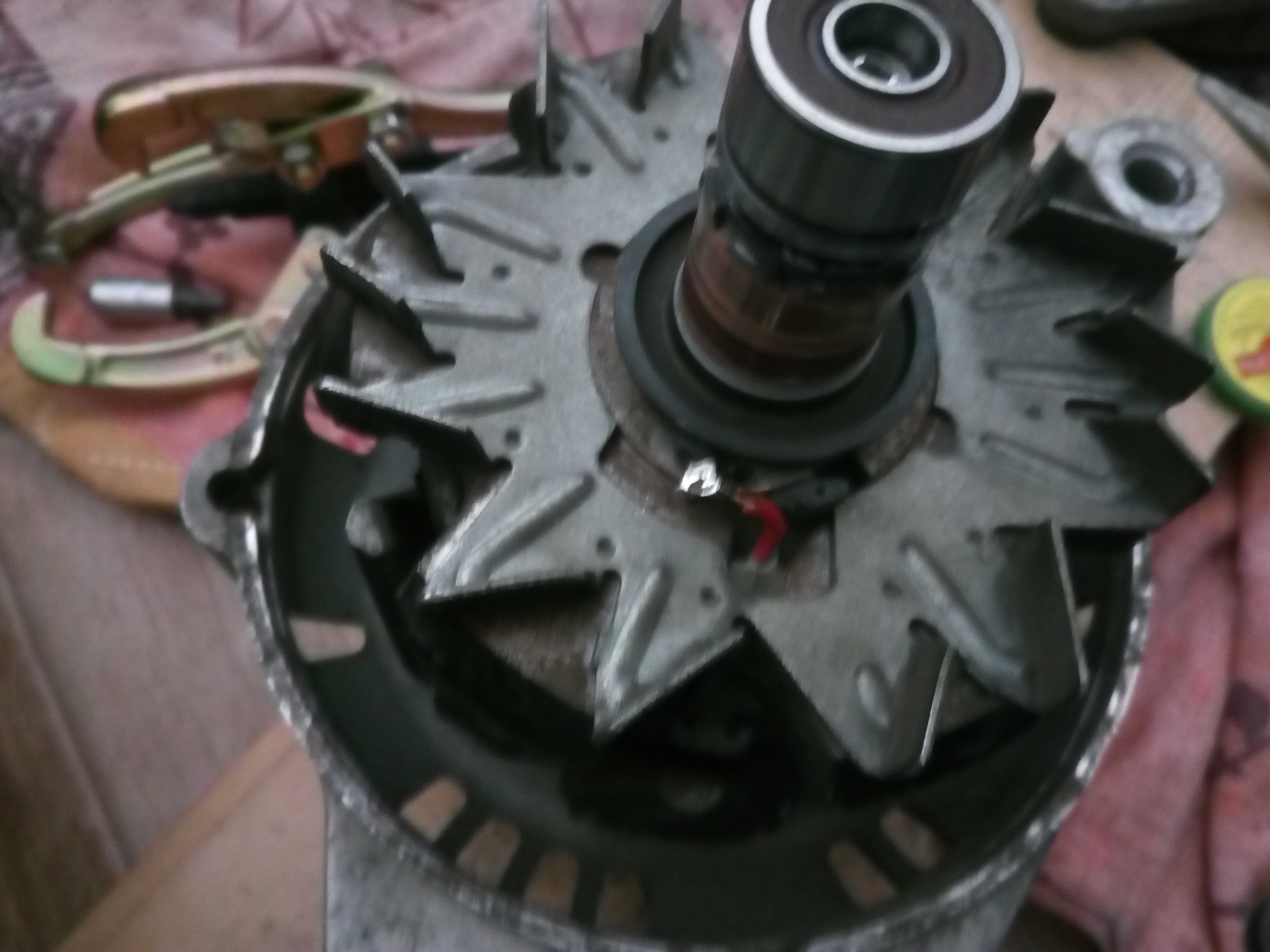 7. Все, когда подшипники заменены собираем генератор. Что бы щетки на мешались, фиксируем их при помощи любого куска проволоки.