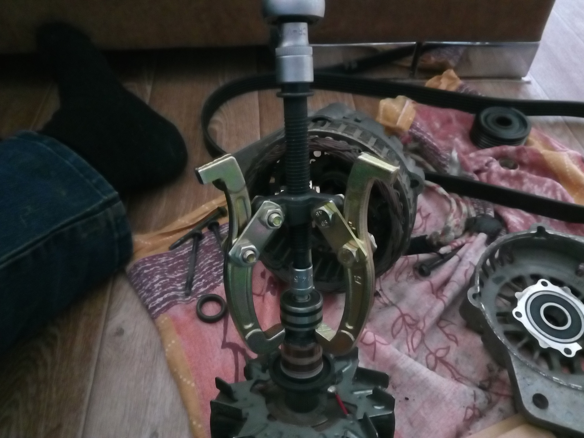 6. снимаем второй подшипник. Этот подшипник оказался в хорошем состоянии, но на всякий случай все равно поменял его. Тут мне пригодился съемник.