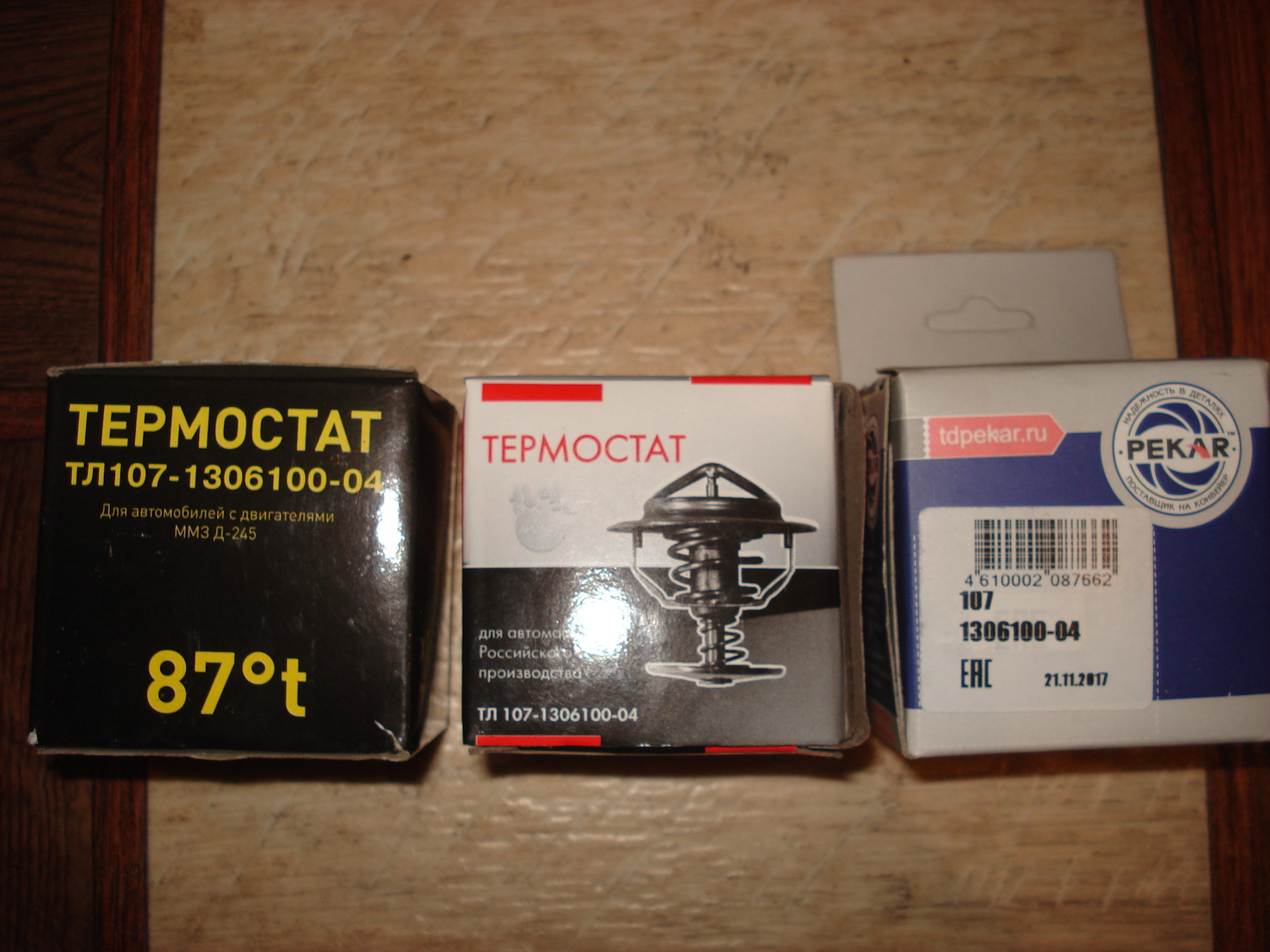 Рабочая температура д-245 85-95t. На выбор термостат 82 или 87. Двигатель не новый и думаю 82 открытие будет в самый раз.