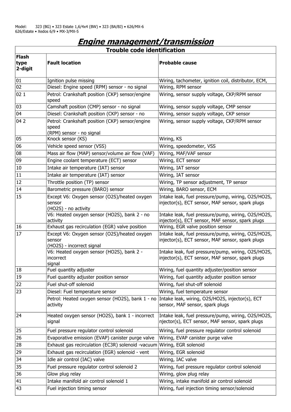 Речь пойдет о полной диагностике Mazda 626 GE, 91-97 год.