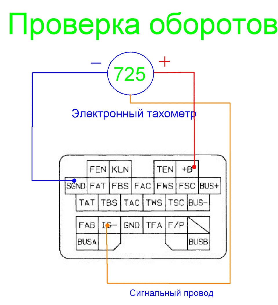 Подключение тахометра или проверка оборотов (очень удобно когда проверяешь запрограммированные обороты и фактические), а также проверка тракта катушки зажигания:
