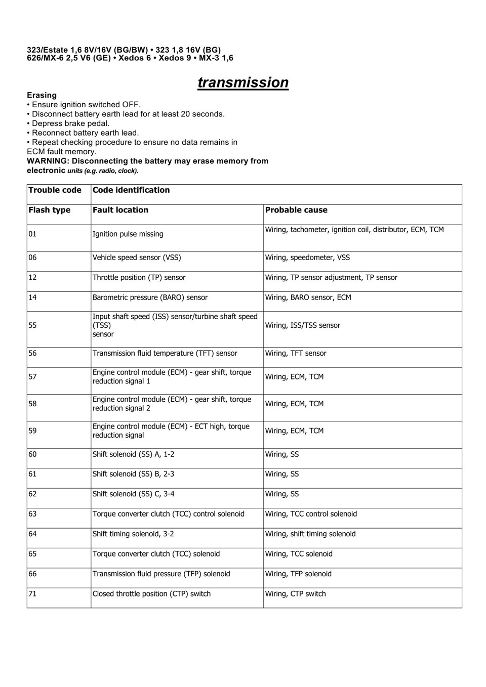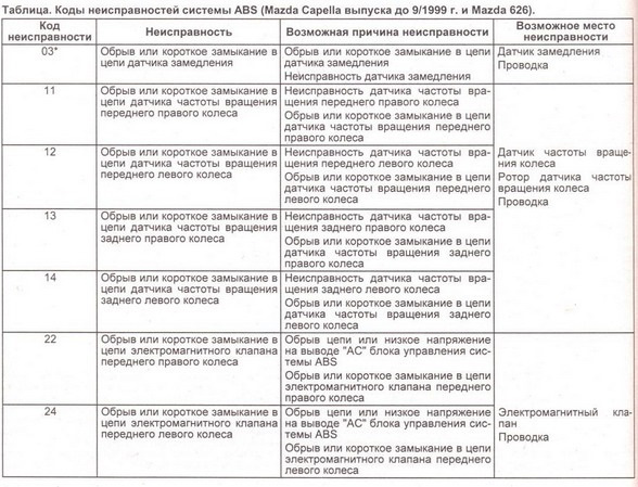 Расшифровка ошибок SRS Aırbag Mazda (Trouble code)