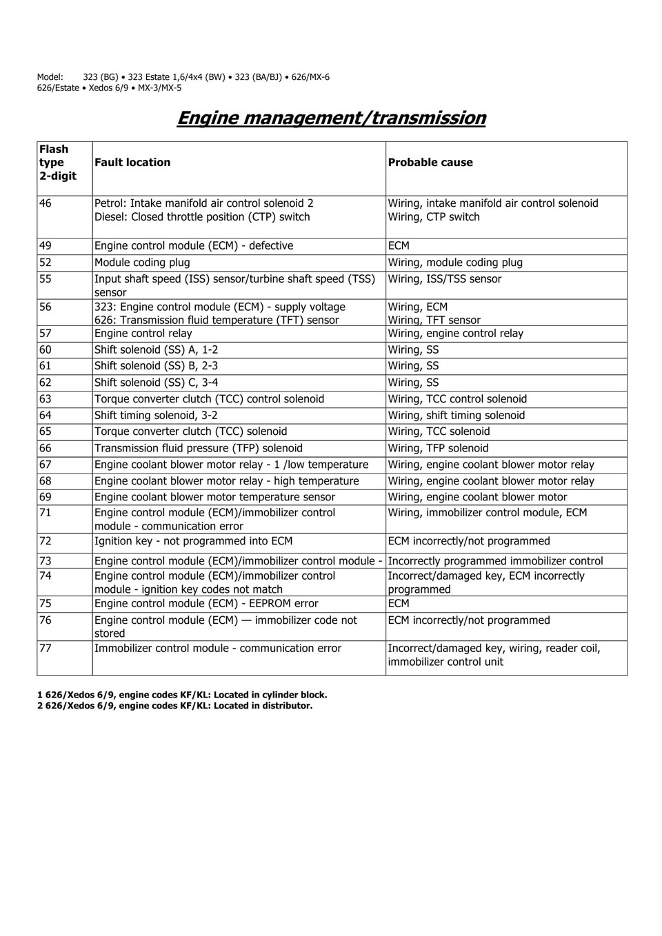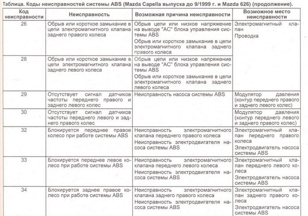 И многие например на 626 не знают как проверить ошибки кондиционера или ошибки круиза, «аирбега», АБС и т.д., потому я решил сделать маленькое руководство со схемами как делать разные виды диагностики, коды сюда не выкладываю, хотя я столкнулся еще и с тем что коды на просторах интернета также только на двигатель, а вот на пример найти коды ошибок «аирбегов» мне таки не удалось, хотя видел много таблиц на наши машины по подушкам, почему то они в разных таблицах не соответствовали друг другу. Потому рекомендую сверять ответы с разных источников.