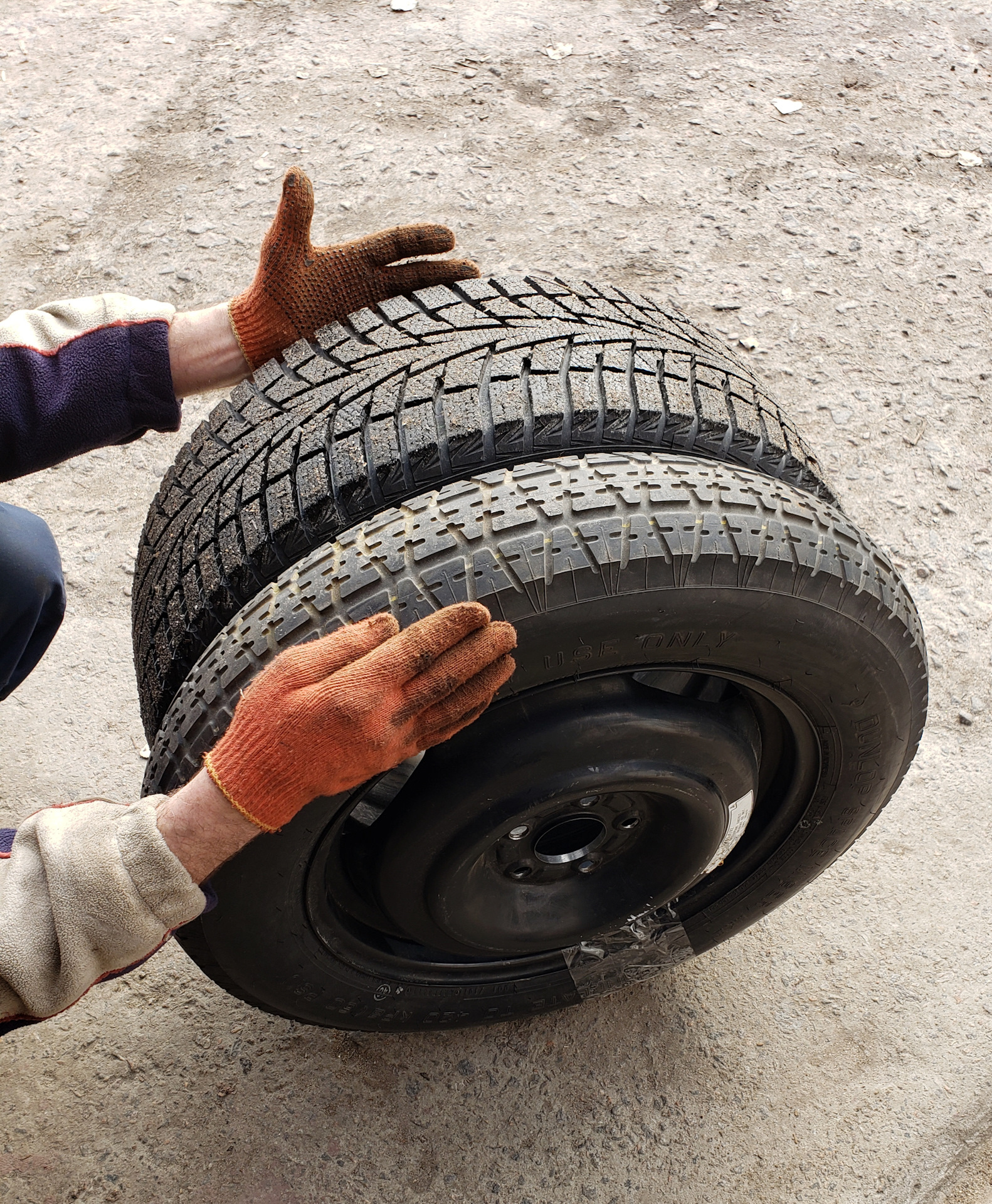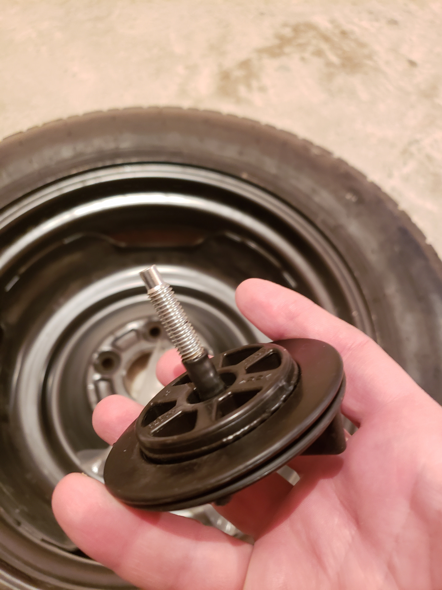 Завтра у меня будет докатка 155/90D16 вот только незнаю какой болт покупать что бы ее закрепить когда она будет лежать выпуклым вверх, как по заводу