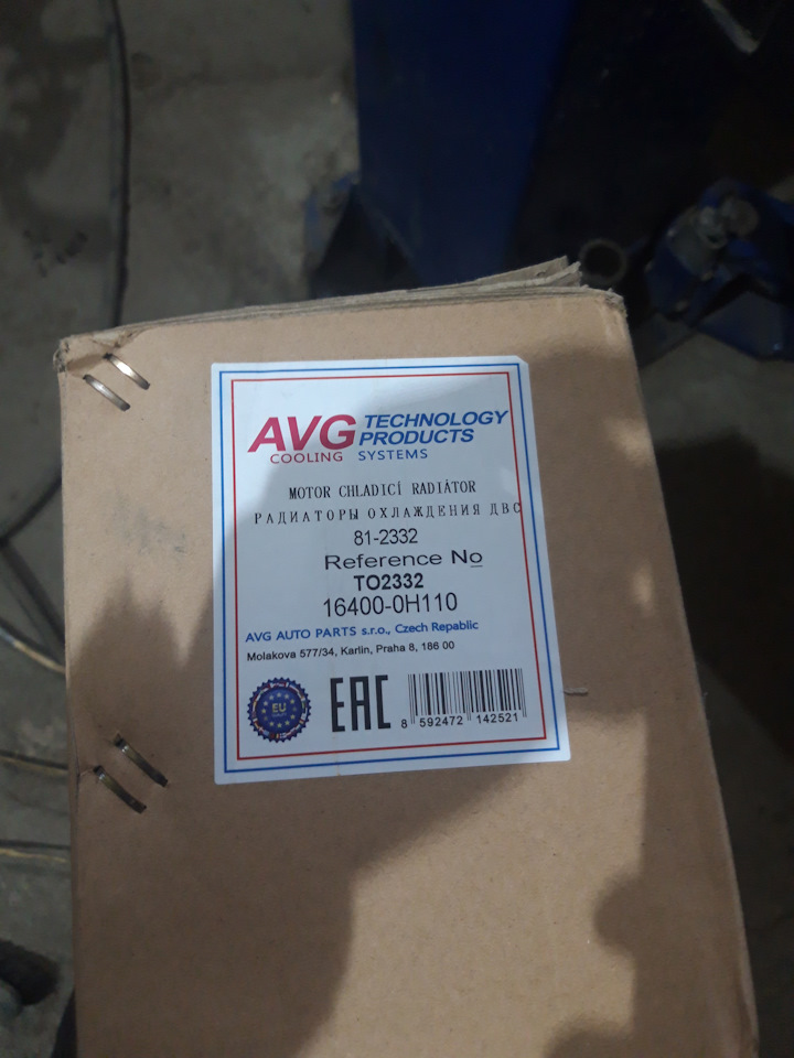 Примерно месяц назад, в одно прекрасное утро отказался запускаться автономный отопитель, то есть был установлен таймер, но в нужное время я вышел из дома и обнаружил холодную машину.После этого полез в ВАГ ком, смотреть, что же произошло.Программа выдала ошибку-Перегрев отопителя, или что то в этом роде.Полез в интернет, искать причину, первый же совет был-проверить уровень антифриза.Проверил-уровень ушел ниже минимума, вот те раз…Долил, были холода, поэтому поиск причины отложил до потепления, и вот неделю назад рано утром завожу машину, а у меня ошибка температуры на БК о перегреве, сразу под капот-бачок пустой(накануне вечером ездил, проблем не было, притапливал только днем разок), ну да ладно, машину трогать не стал, поехал на А4.По приезду первым делом долил антифриз и поехал на диагностику.На подъемнике выяснилось, что капает с радиатора, отбегался значит.Далее-домой за комп и на сайт экзист, заказывать ЗЧ.Оригинал как всегда"порадовал" -почти 48 тыс за радиатор…Из аналогов самое известное было как всегда nissens и ava, со вторым сталкивался, гумно несусветное, на счет первого было 50/50, хоть бу оригинал бери …И тут наткнулся на AVG, но было написано что он OEM паяный, что это значит не знаю, возможно какой то восстановленный, заодно и отзывы почитал, вроде не плохие-заказал.