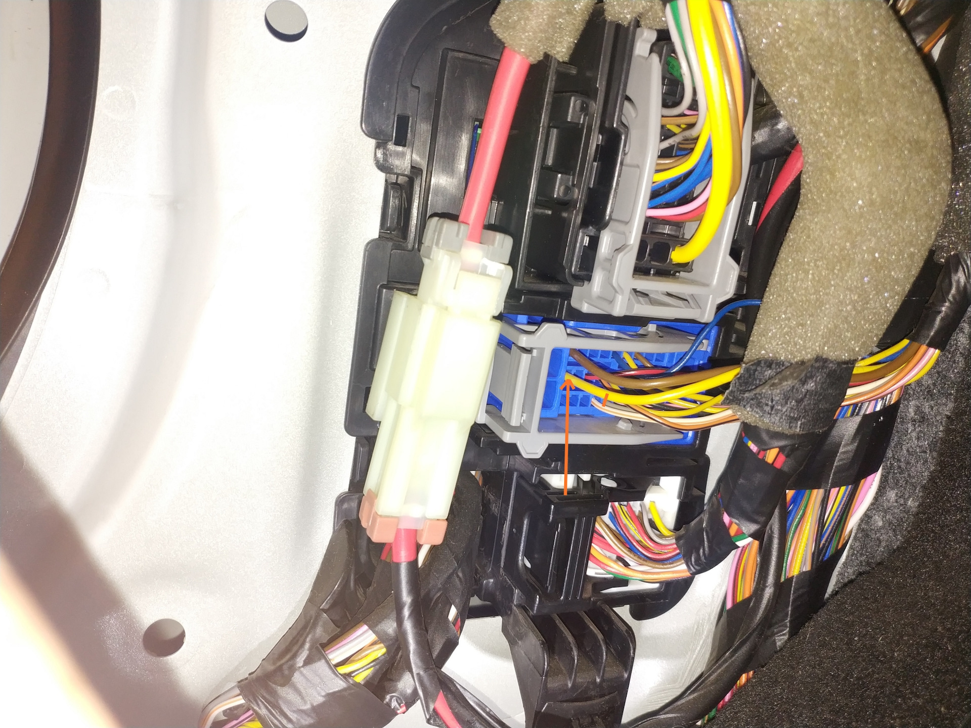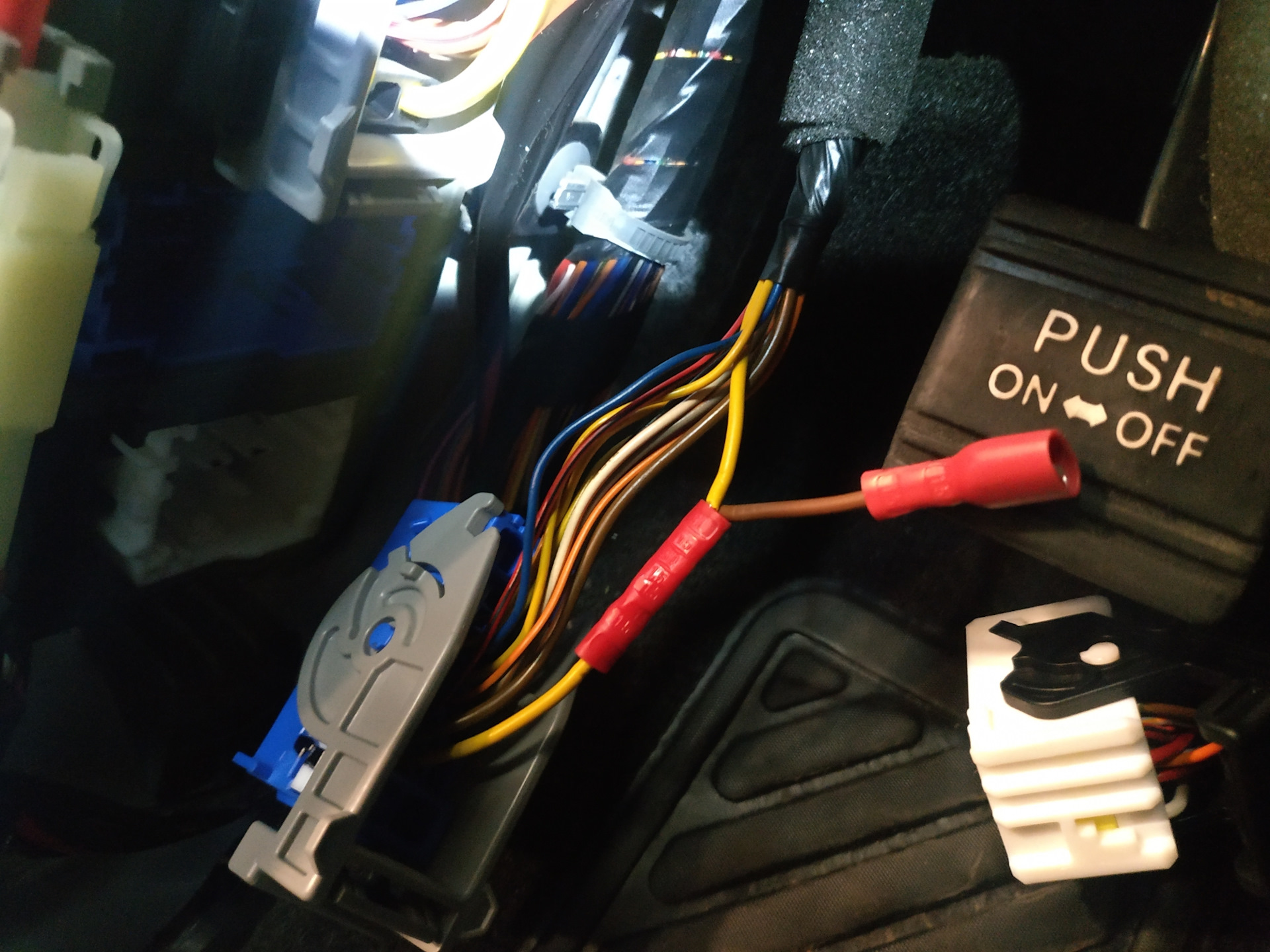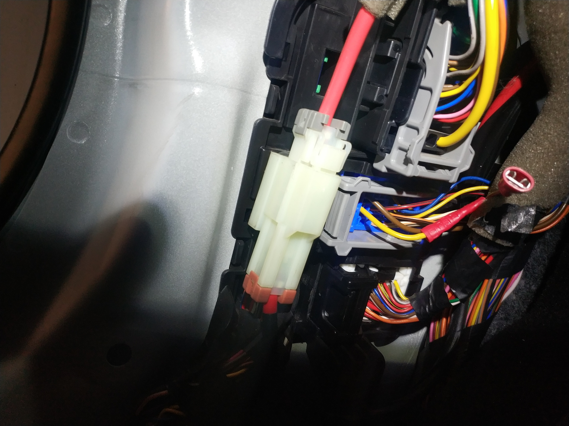 На дорестах это делается путем замыкания контактов реле, на рестах реле нет, насосом управляет эл сборка в коробке предохранителей, соответственно ничего вытащить и перемкнуть контакты нельзя. Вопрос решается просто, необходимо снять обшивку стойки в ногах водителя. Далее, на жёлтый провод в среднем разъёме, при выключенном зажигании, подать + от АКБ. Прокачать, пока перестанет булькать воздух в фильтре, это не долго — около минуты. Собрать все обратно и можно заводить. См фото.
