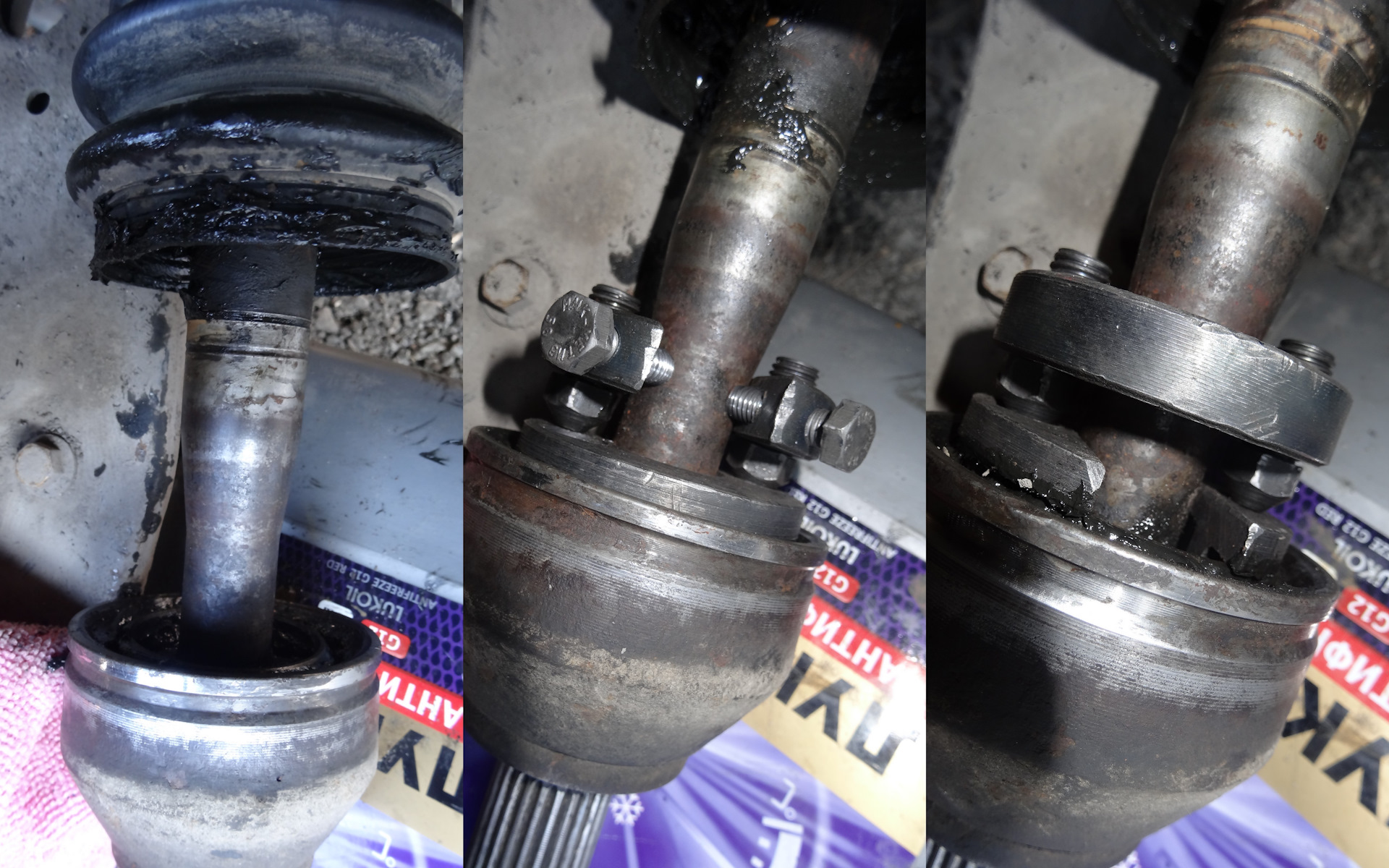 Прелесть пыльника в том, что он РЕЗИНОВЫЙ, но и старый SPIDAN из термопласта я тоже оставил про запас. А резиновый пыльник обжимается хомутами при помощи спецклещей очень классно. С термопластом у меня такого не получилось и пришлось оставить на бОльшем диаметре червячный хомут. Затем завершил работы, добив смазкой гранату и выполнил тестовый заезд, который закончился весьма успешно.