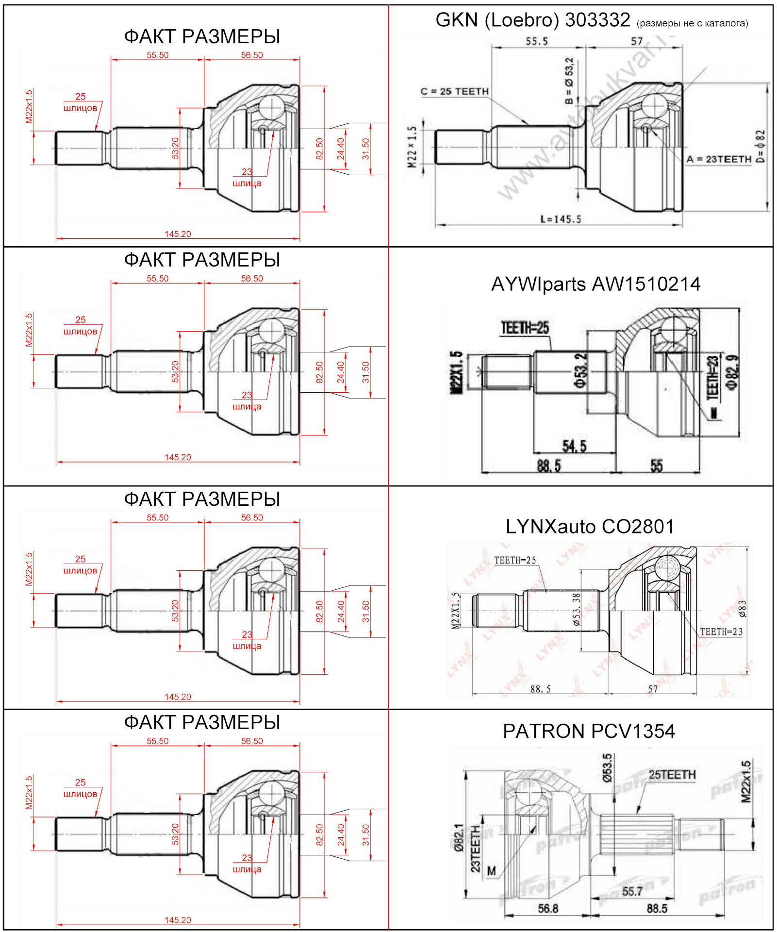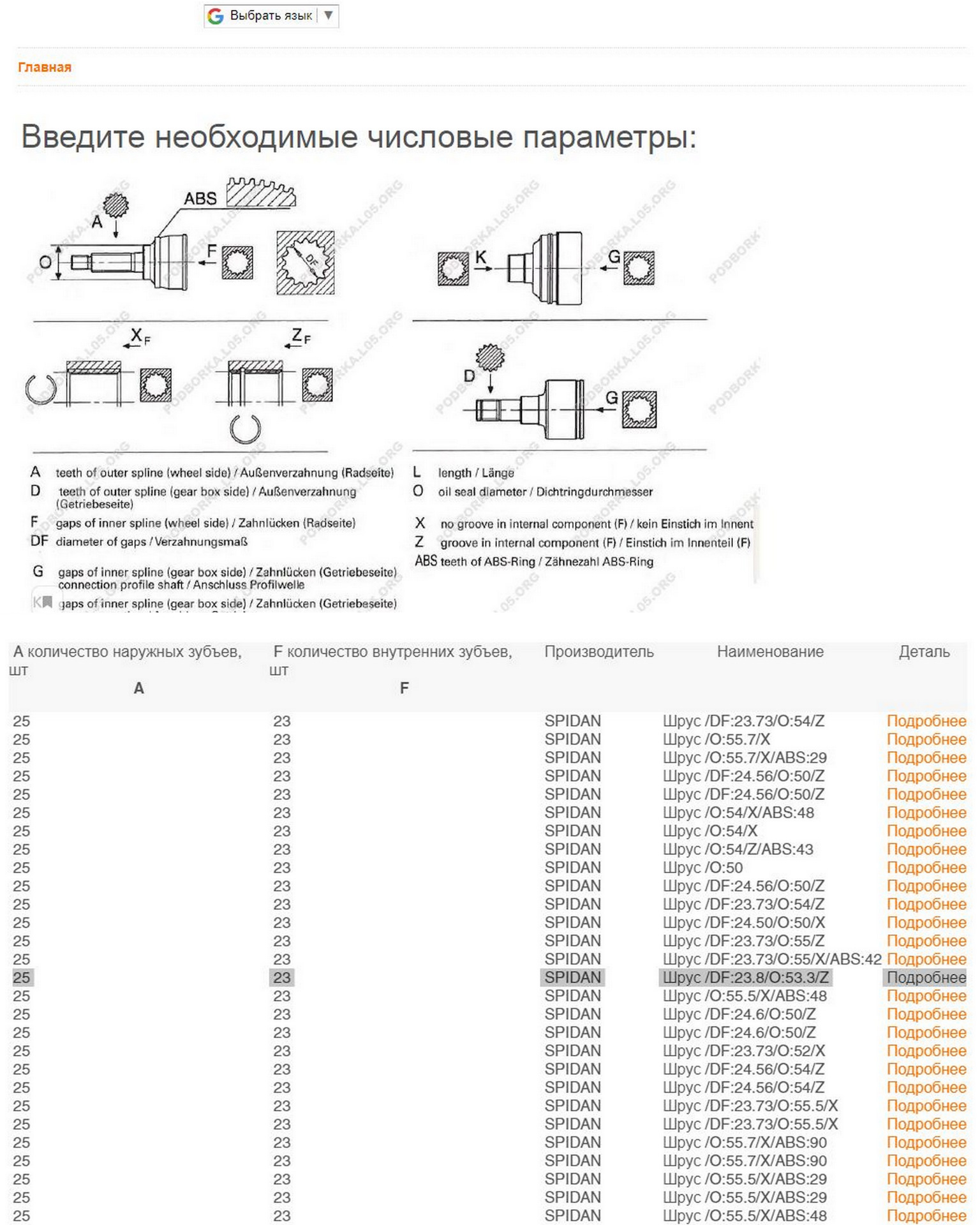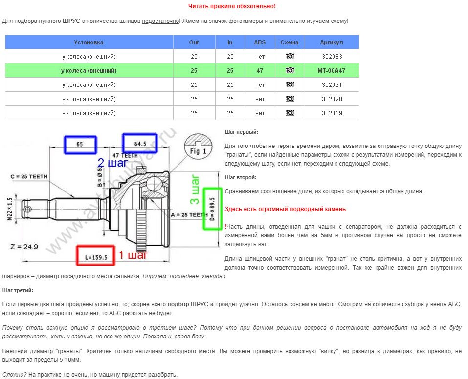 Для подбора необходимого ШРУС по размерам пользовался следующими ресурсами: